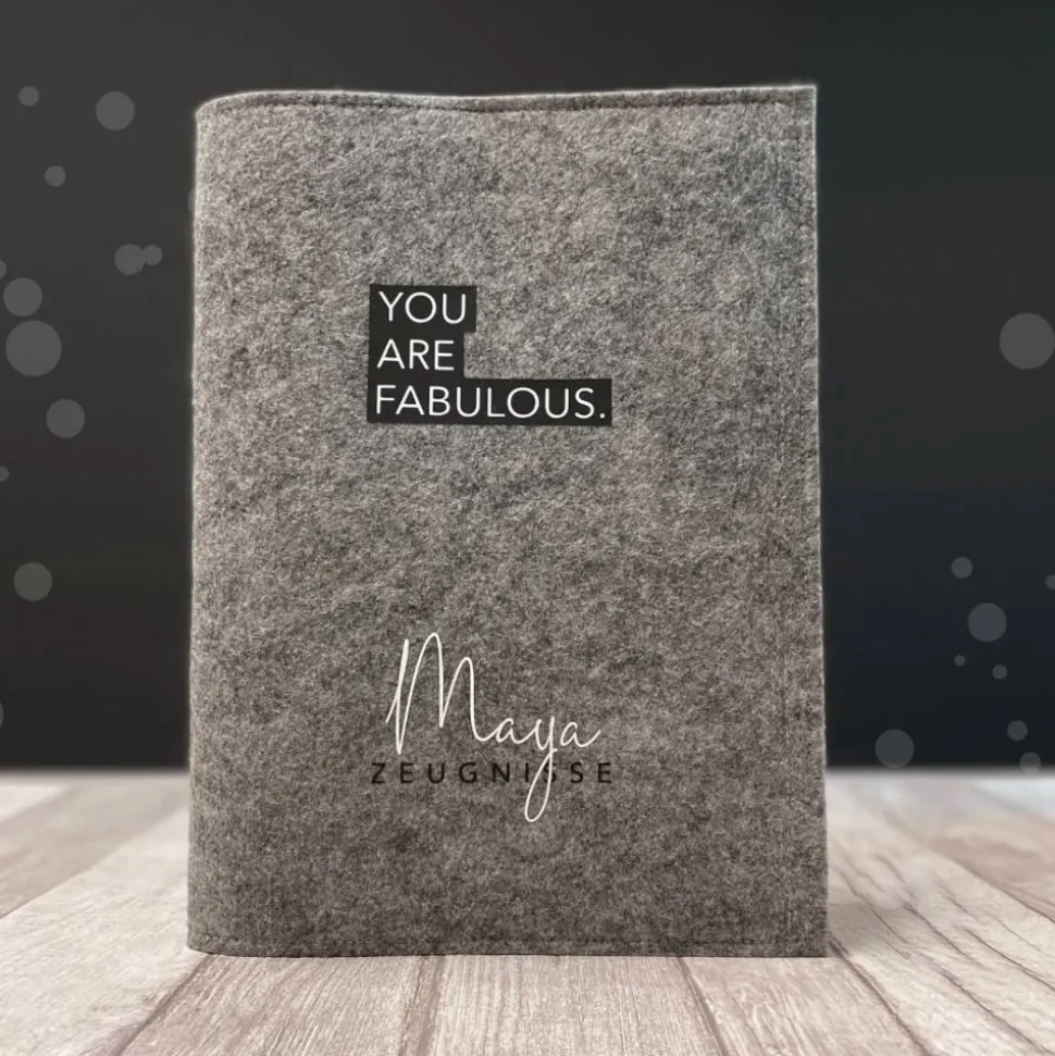 Zeugnismappe aus Filz *you are fabulous* | personalisiert mit Namen und Farbe