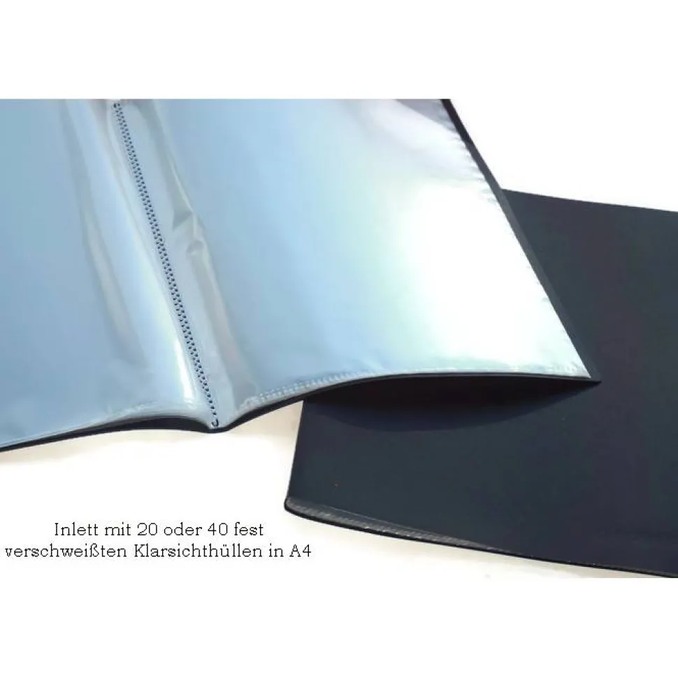 Die Mappe enthält ein LEITZ Solid Qualitäts-Sichtbuch DIN A4 mit 20 oder 40 fest verschweißten, glatten Hüllen – ideal für Zeugnisse und wichtige Dokumente. -20 Hüllen sind im Preis enthalten