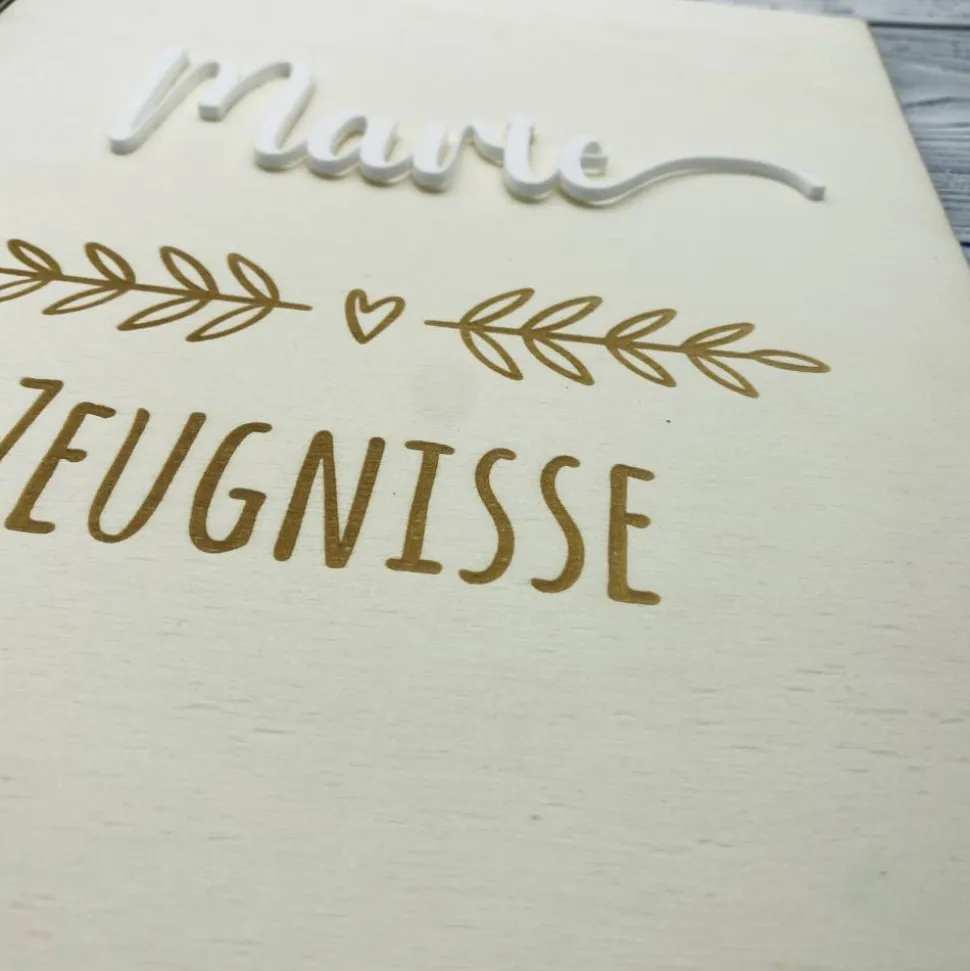 Unsere personalisierte Zeugnismappe aus Holz ist das perfekte Einschulungsgeschenk für Mädchen und Jungen.