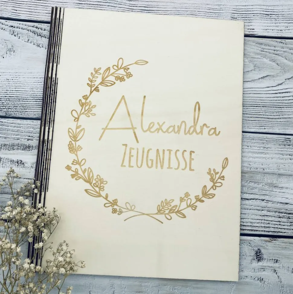 Unsere personalisierte Zeugnismappe aus Holz ist das perfekte Einschulungsgeschenk für Mädchen und Jungen.