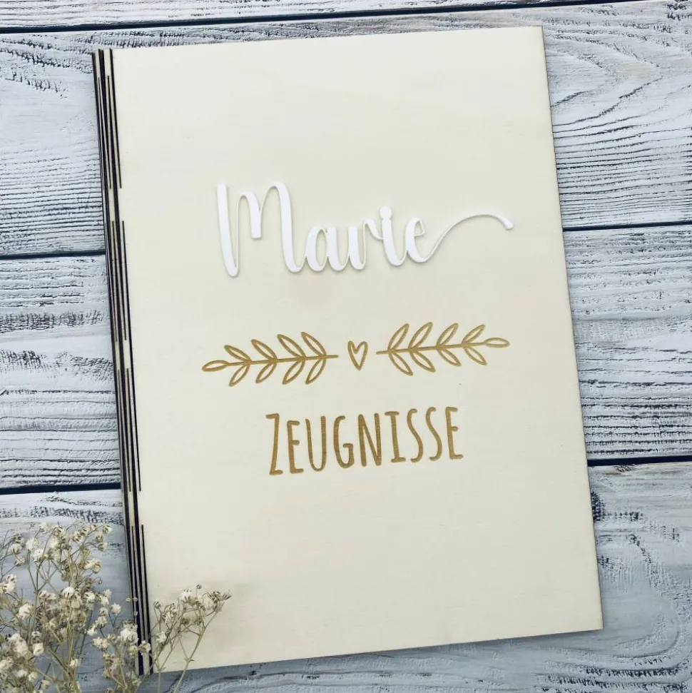 Unsere personalisierte Zeugnismappe aus Holz ist das perfekte Einschulungsgeschenk für Mädchen und Jungen.