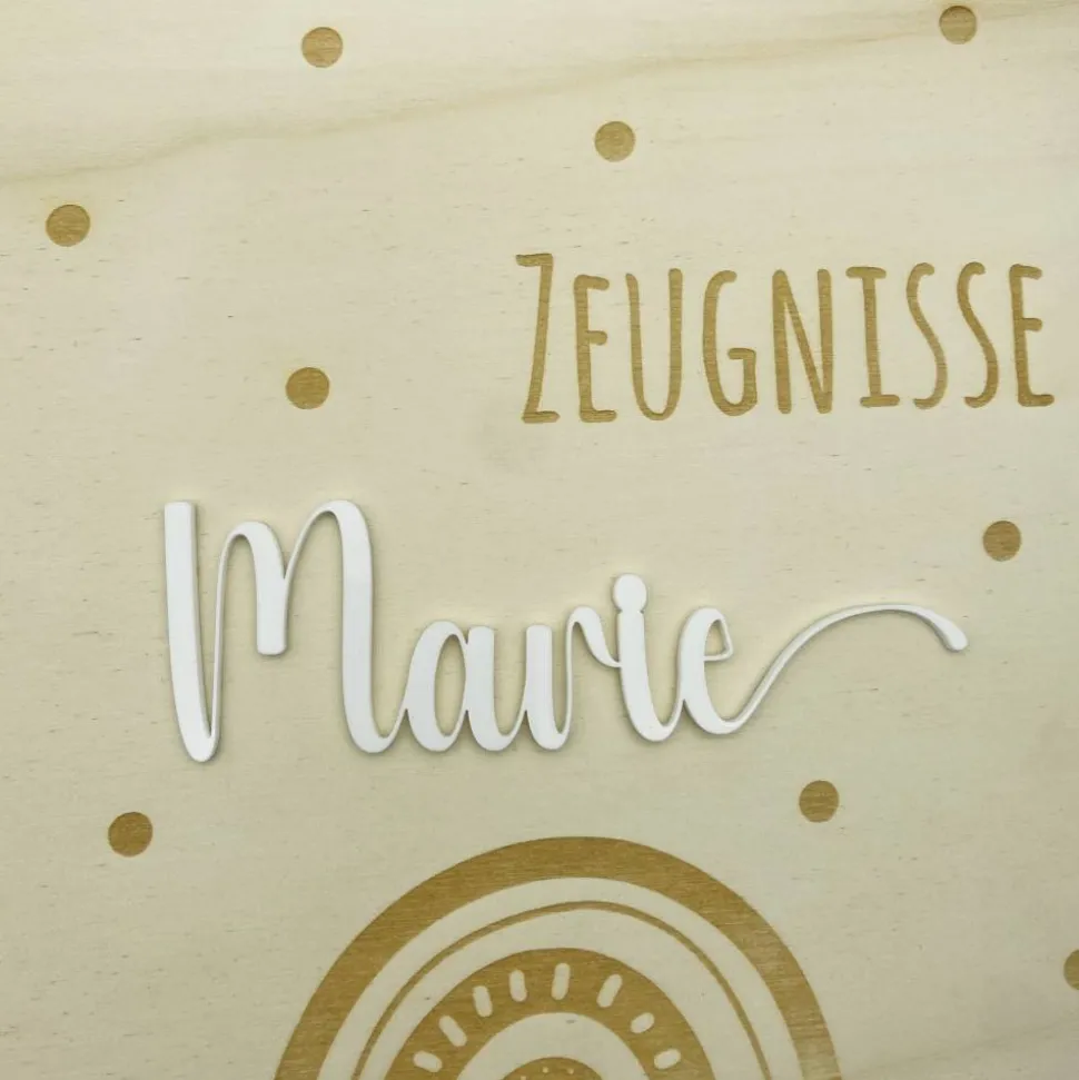 Unsere personalisierte Zeugnismappe aus Holz ist das perfekte Einschulungsgeschenk für Mädchen und Jungen.