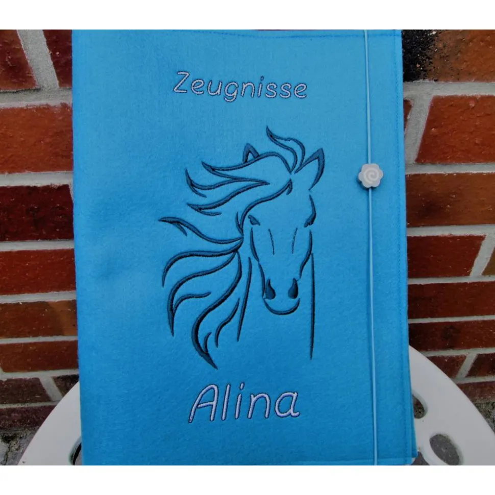 Die Zeugnisshülle wurde mit viel Liebe von mir entworfen, bestickt und genäht.