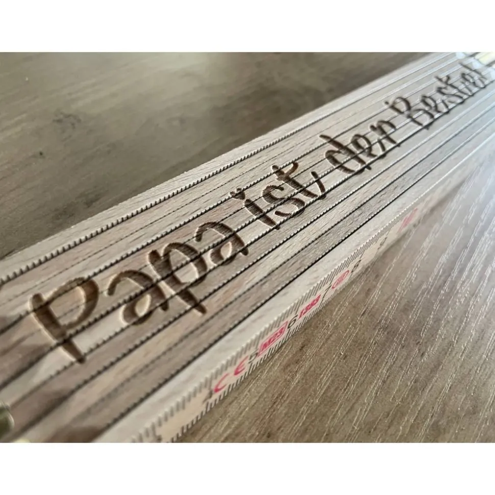 Unser personalisierter Zollstock mit Gravur ist das perfekte Geschenk für Handwerker und Heimwerker, aber natürlich auch echte Powerfrauen. Aus robustem Buchenholz gefertigt, ist er nicht nur ein praktisches Werkzeug, sondern auch ein edles Andenken. Die Gravur verleiht dem Zollstock eine persönliche Note und macht ihn zu einem echten Unikat. Als Geschenk zu Geburtstagen, Jubiläen, zum Vatertag oder als persönliches Dankeschön – mit unserem personalisierten Zollstock liegen Sie immer richtig! Optimiert für höchste Genauigkeit und mit leicht ablesbarer Skala ist er das perfekte Werkzeug für alle Messaufgaben. Der aus hochwertigem Buchenholz gefertigte Zollstock ist zudem äußerst langlebig und robust. Als Gravur kann ein Text, Logo oder andere Zeichen verwendet werden. Bei der Bestellung kann der individuelle Wunsch ganz einfach angegeben werden.