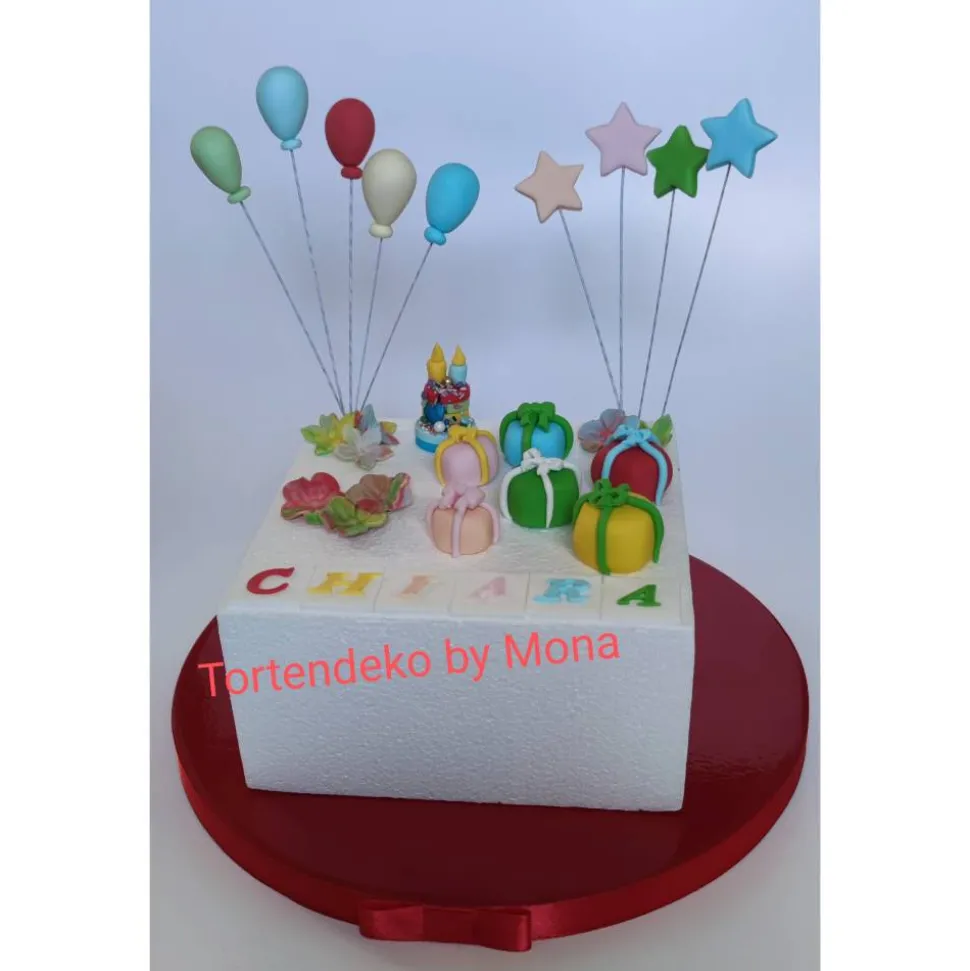 Die Figuren sind aus Fondant (Zuckermasse) mit Lebensmittelfarben hergestellt und sind durch Zugabe der Cellulose hart.