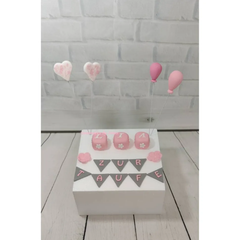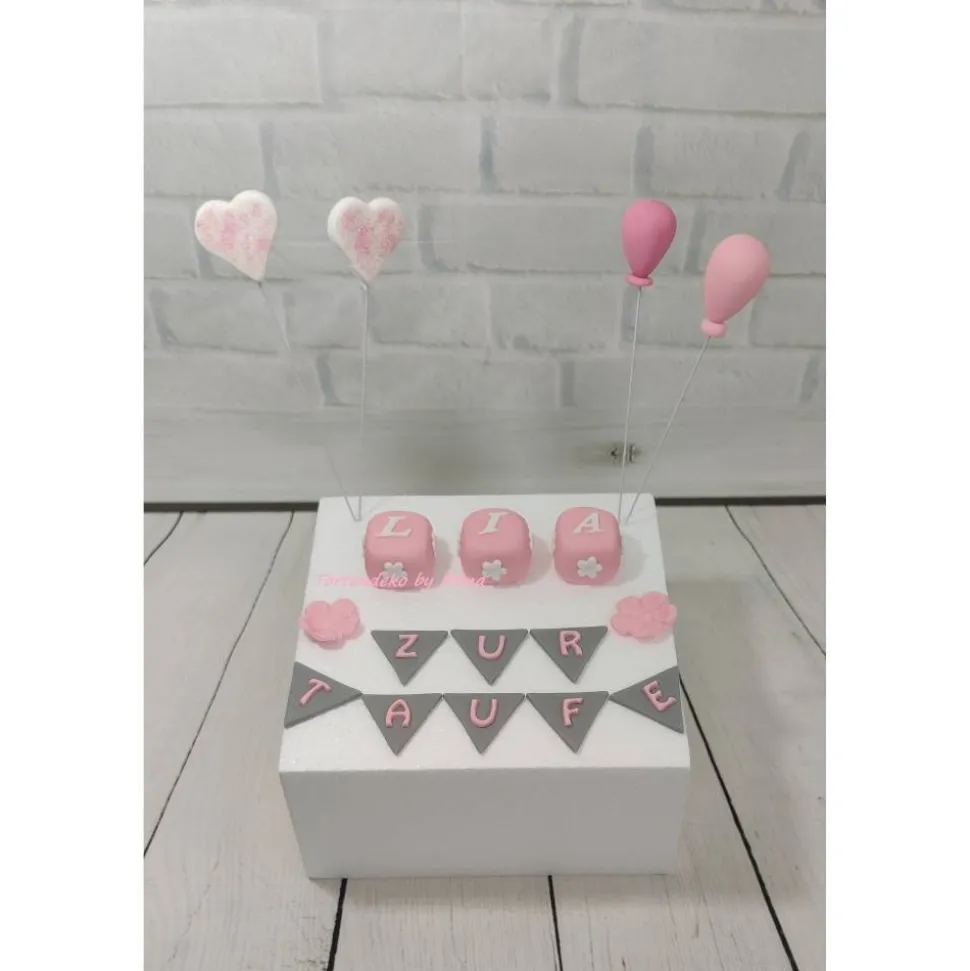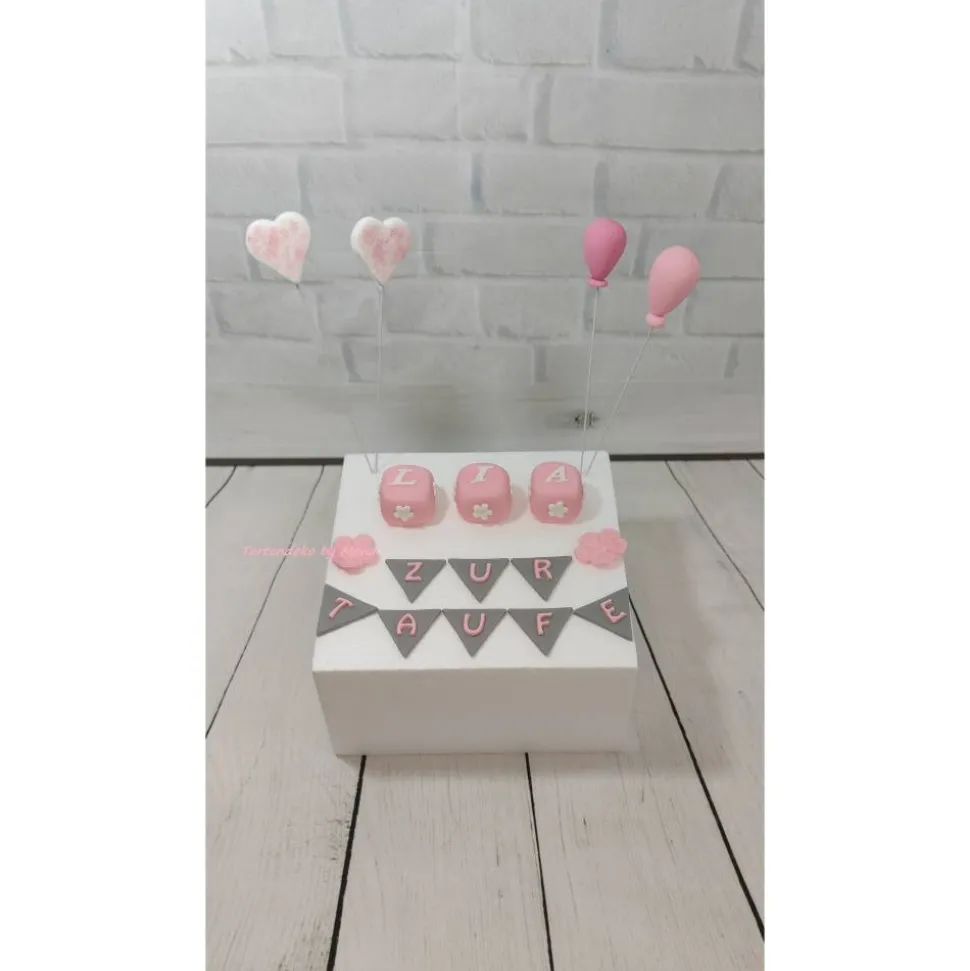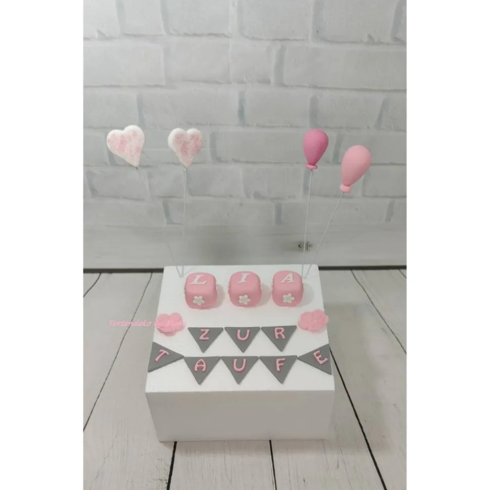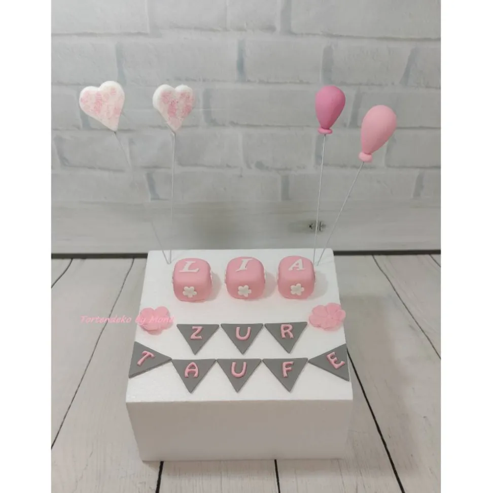 Hier bekommt ihr eine Tortendeko für die Taufe. Natürlich kann ich es auch in anderen Farben fertigen , damit es auch für kleine Jungs passt. Im Angebot enthalten ist die Deko die abgebildet ist ( der Dummy gehört nicht dazu ) Namenswürfel sind 3 Stück enthalten bei mehr benötigten, bitte dazu kaufen.