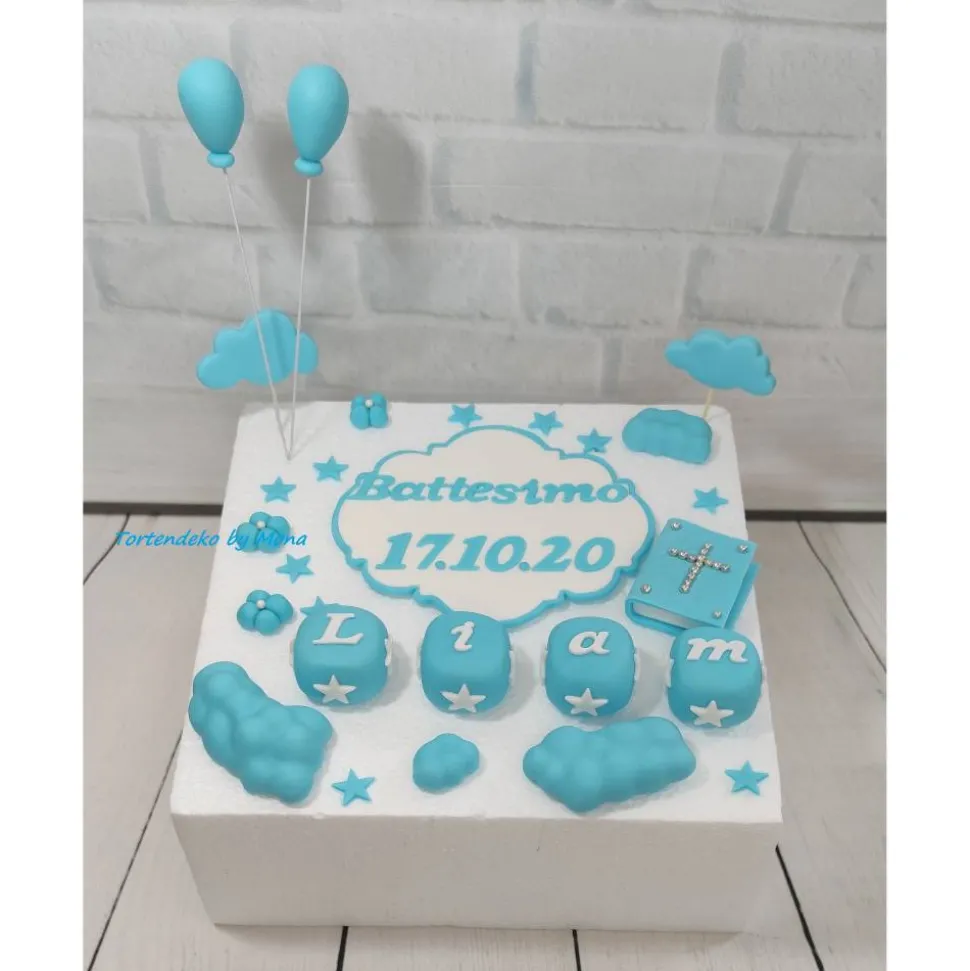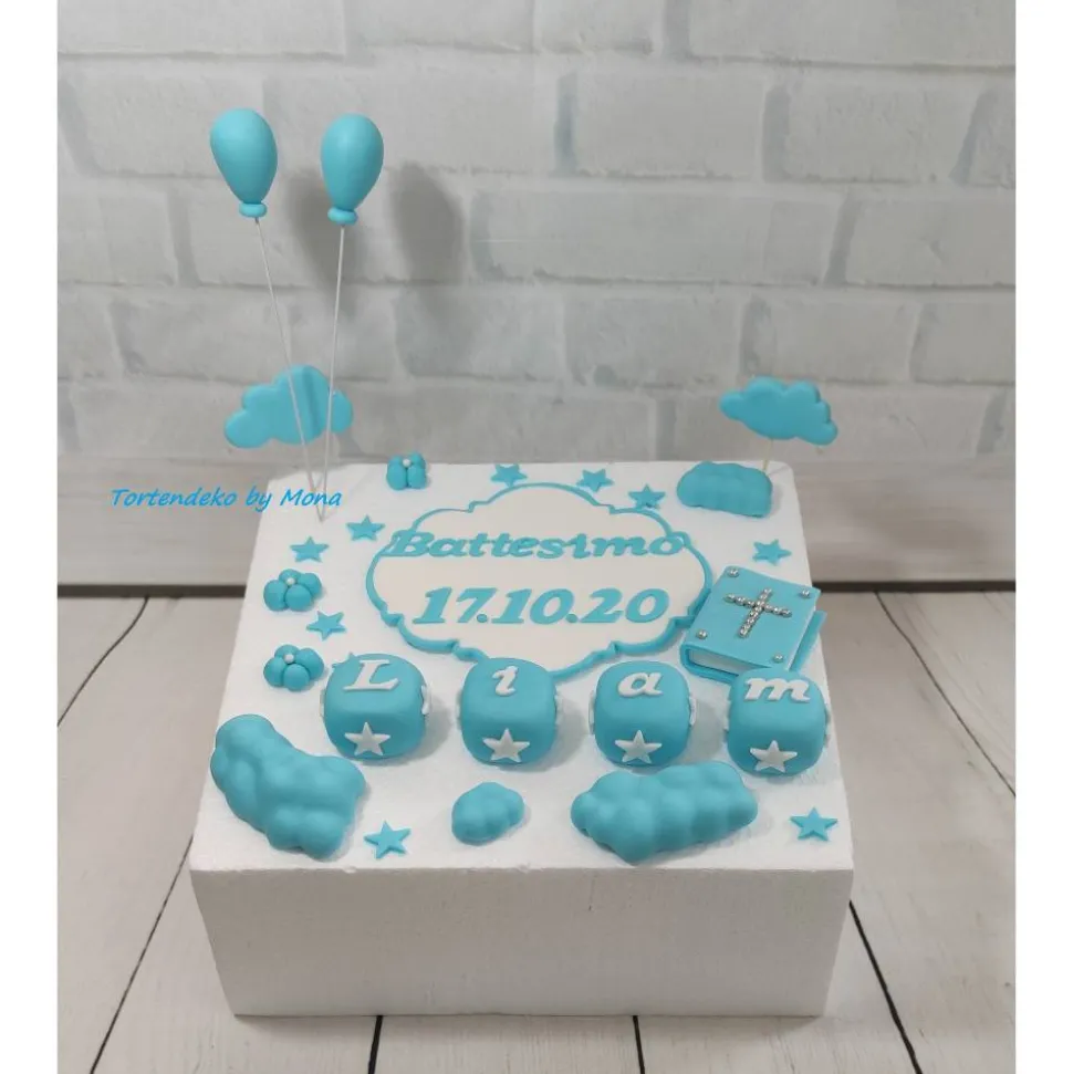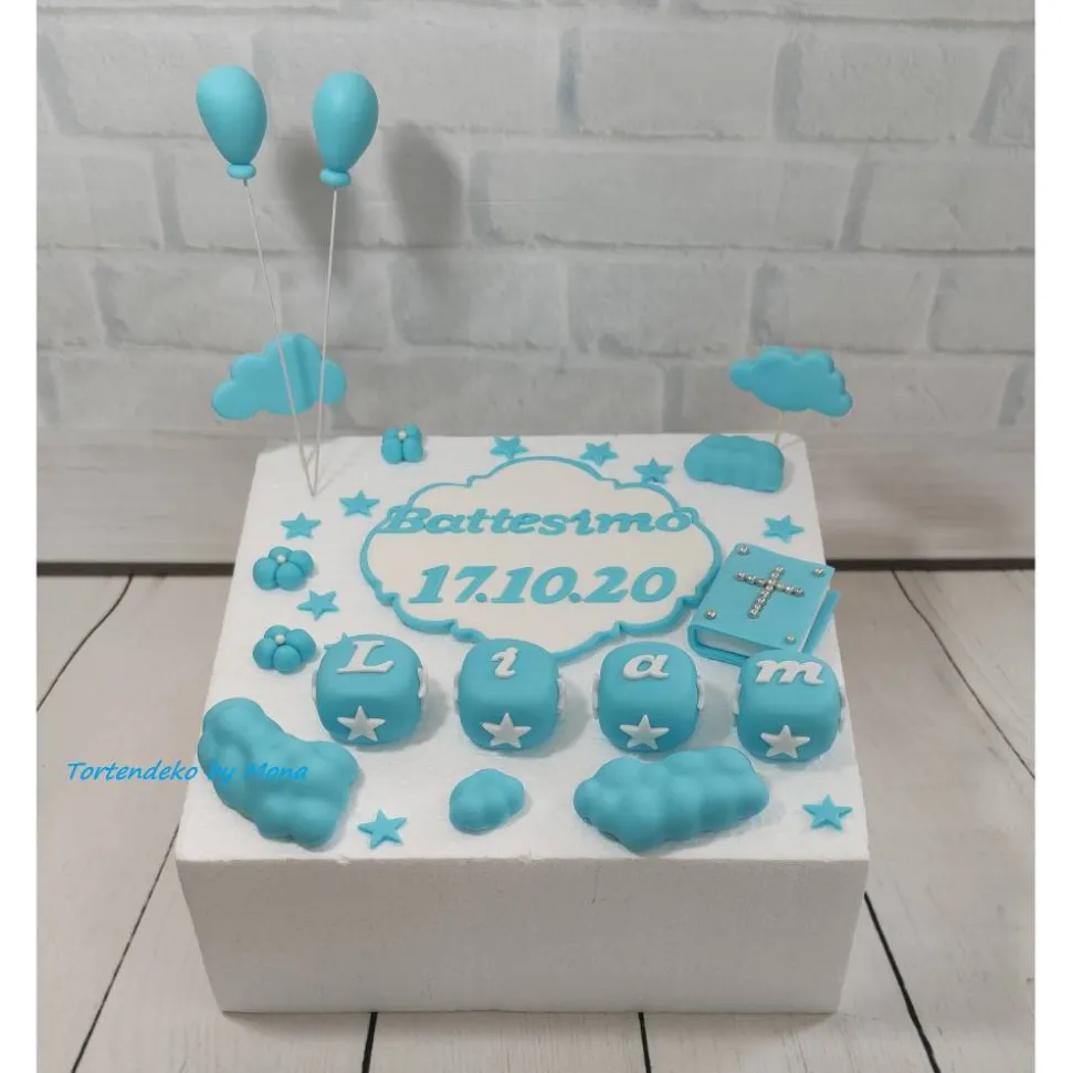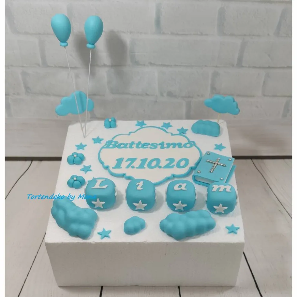 Hier bekommt ihr eine Tortendeko für die Taufe. Natürlich kann ich es auch in anderen Farben fertigen , damit es auch für kleine Mädchen passt. Im Angebot enthalten ist die Deko die abgebildet ist ( der Dummy gehört nicht dazu ) Namenswürfel sind 4 Stück enthalten bei mehr benötigten, bitte dazu kaufen.