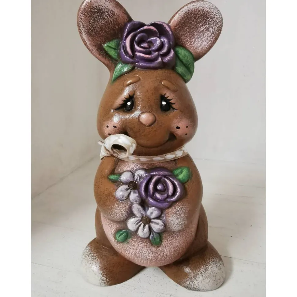 Der Hase ist aus Keramik, ca 21cm hoch. Handbemalt mit sehr viel Liebe zum Detail und mit einem Zuckersüsse Schleifchen dekoriert. Verwendet hab ich dafür Acrylfarben und abschließend zweimal wetterfest versiegelt. Das Häschen kann draussen stehen, sollte aber vor Frost geschützt werden.