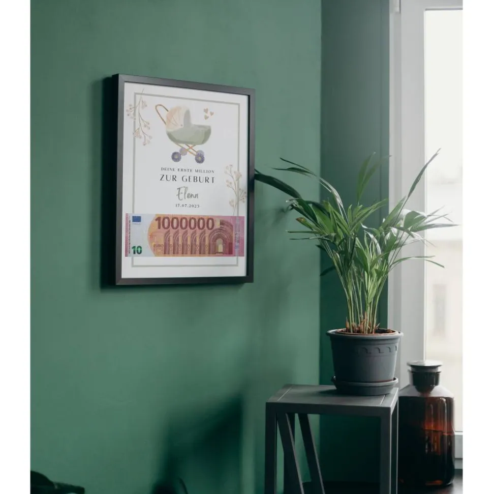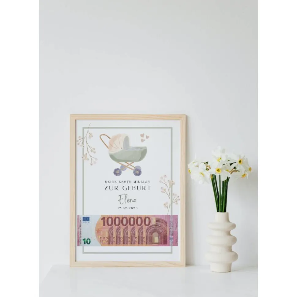 Zur Geburt | personalsiertes Geldgeschenk zur Geburt – Erste Million | Geschenk mit Namen | individualisiertes Geschenk