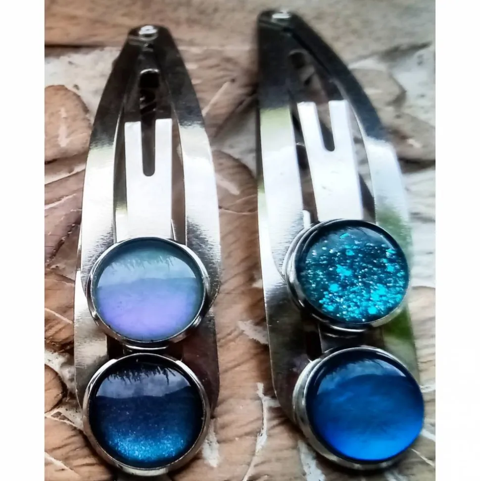 12mm großer Glasstein in bronzefarbenen Haarspangen. Zwei an der Zahl.