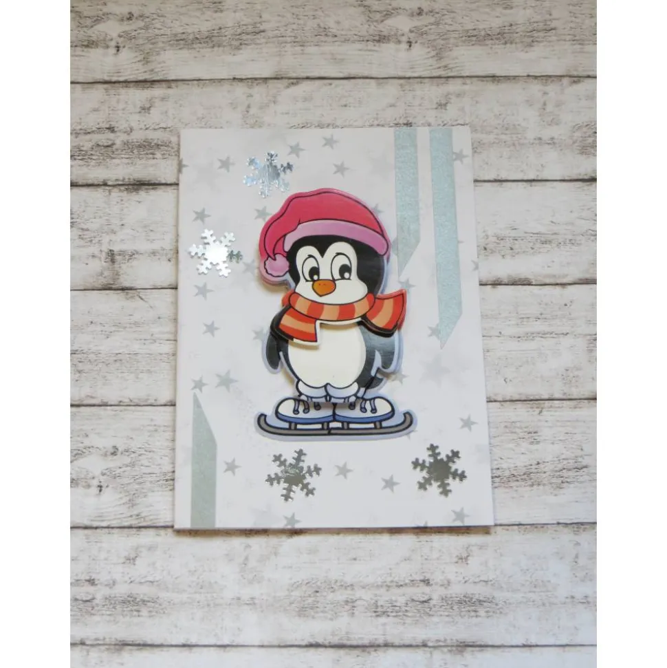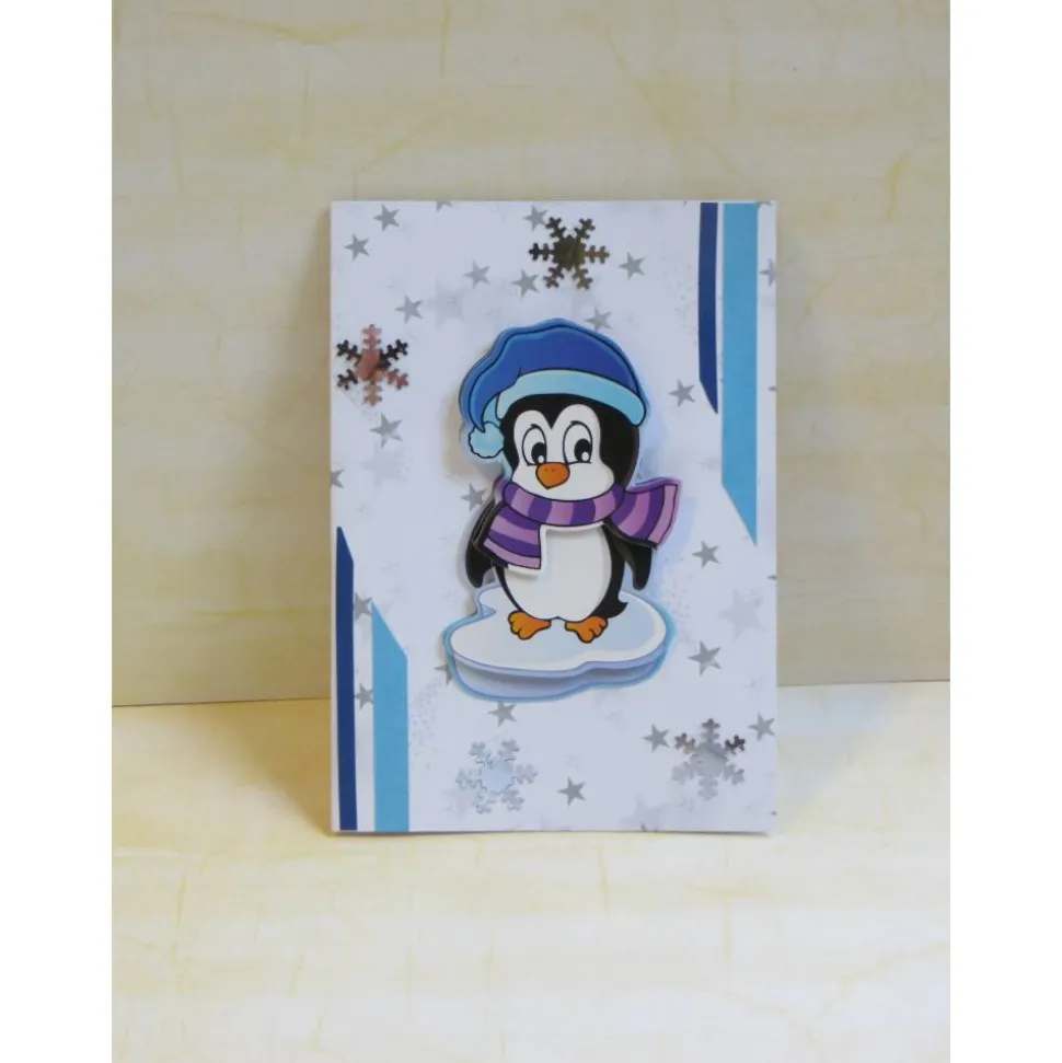Der Pinguin ist in 3d Form gestaltet. Die Weihnachtskarte, Geburtstagskarte ist aus geprägtem Kartenkarton gestaltet.