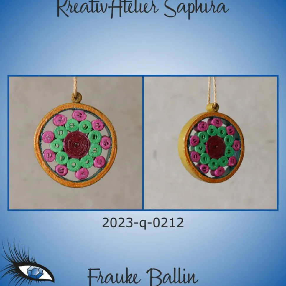 Diese wunderschöne Quilling-Anhänger wurde in liebevoller Handarbeit aus hochwertigen Papierstreifen hergestellt.