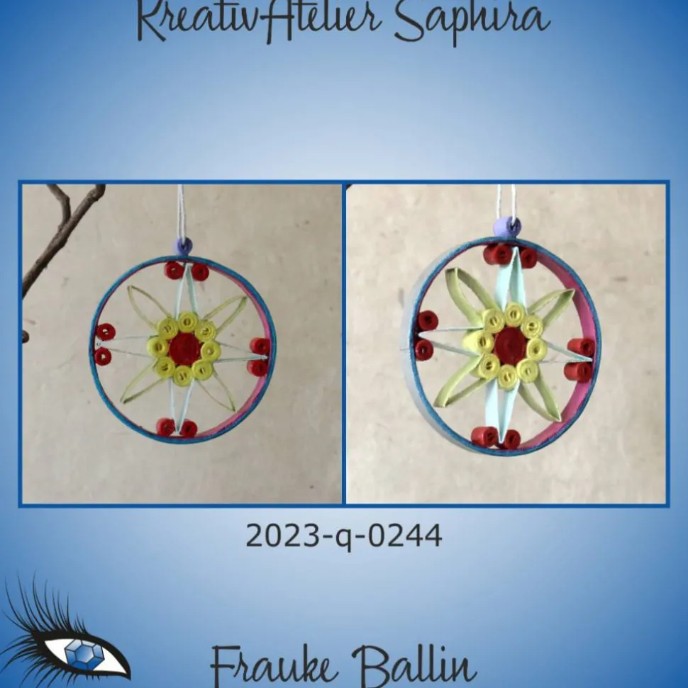 Diese wunderschöne Quilling-Anhänger wurde in liebevoller Handarbeit aus hochwertigen Papierstreifen hergestellt.
