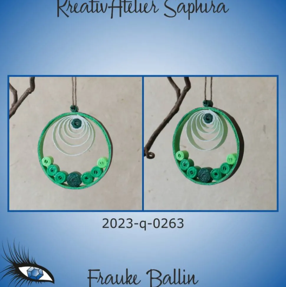 Diese wunderschöne Quilling-Anhänger wurde in liebevoller Handarbeit aus hochwertigen Papierstreifen hergestellt.