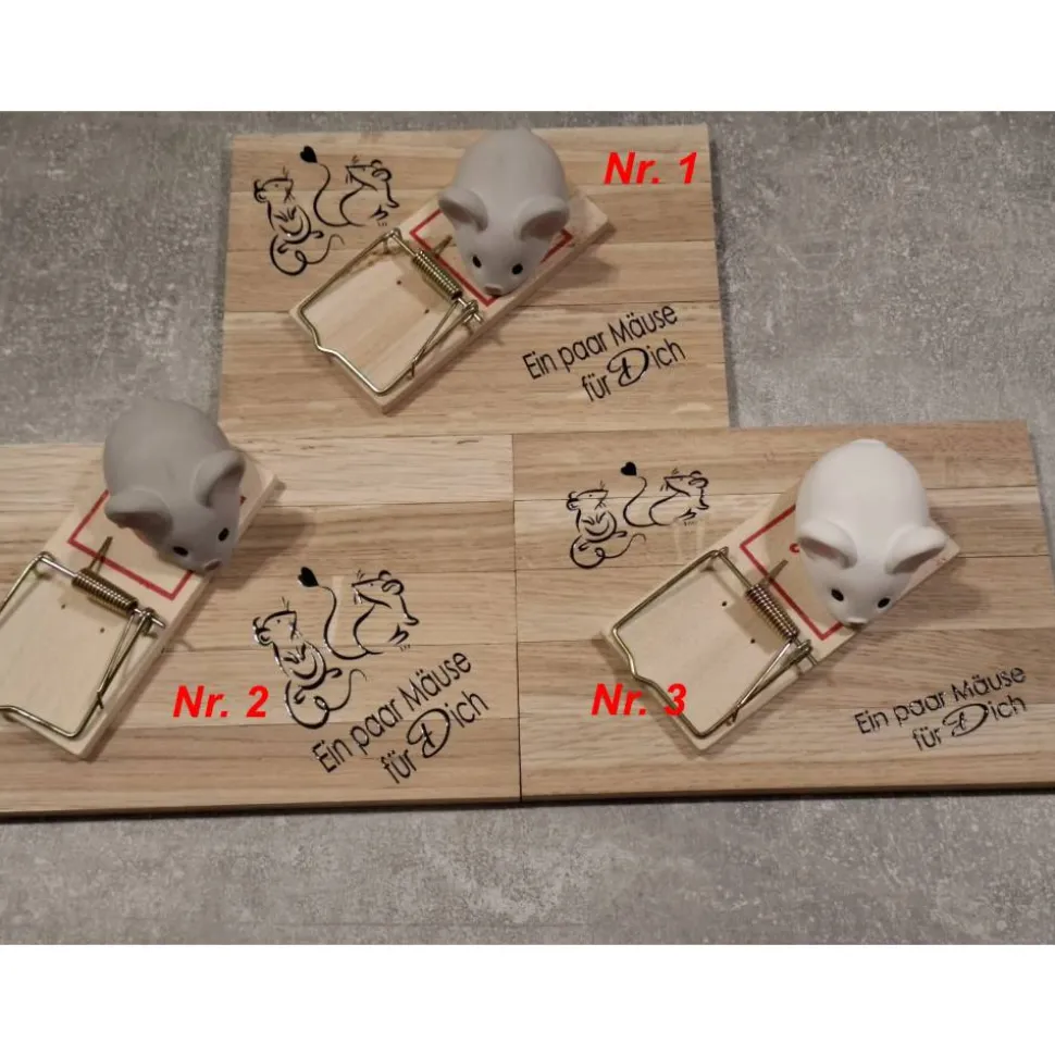 Verschenke Geldscheine auf kreative Art: Mit dieser Mausefalle mit Maus wird dein Geldgeschenk zum echten Hingucker. Die Mausefalle ist fest auf einem Untergrund aus Holzklötzchen montiert und besitzt keinen Auslöser, sodass die Anwendung sicher ist. Einfach deinen Geldschein oder den Gutschein falten und unter die Federklammer legen – sie hält das Geld sicher fest.