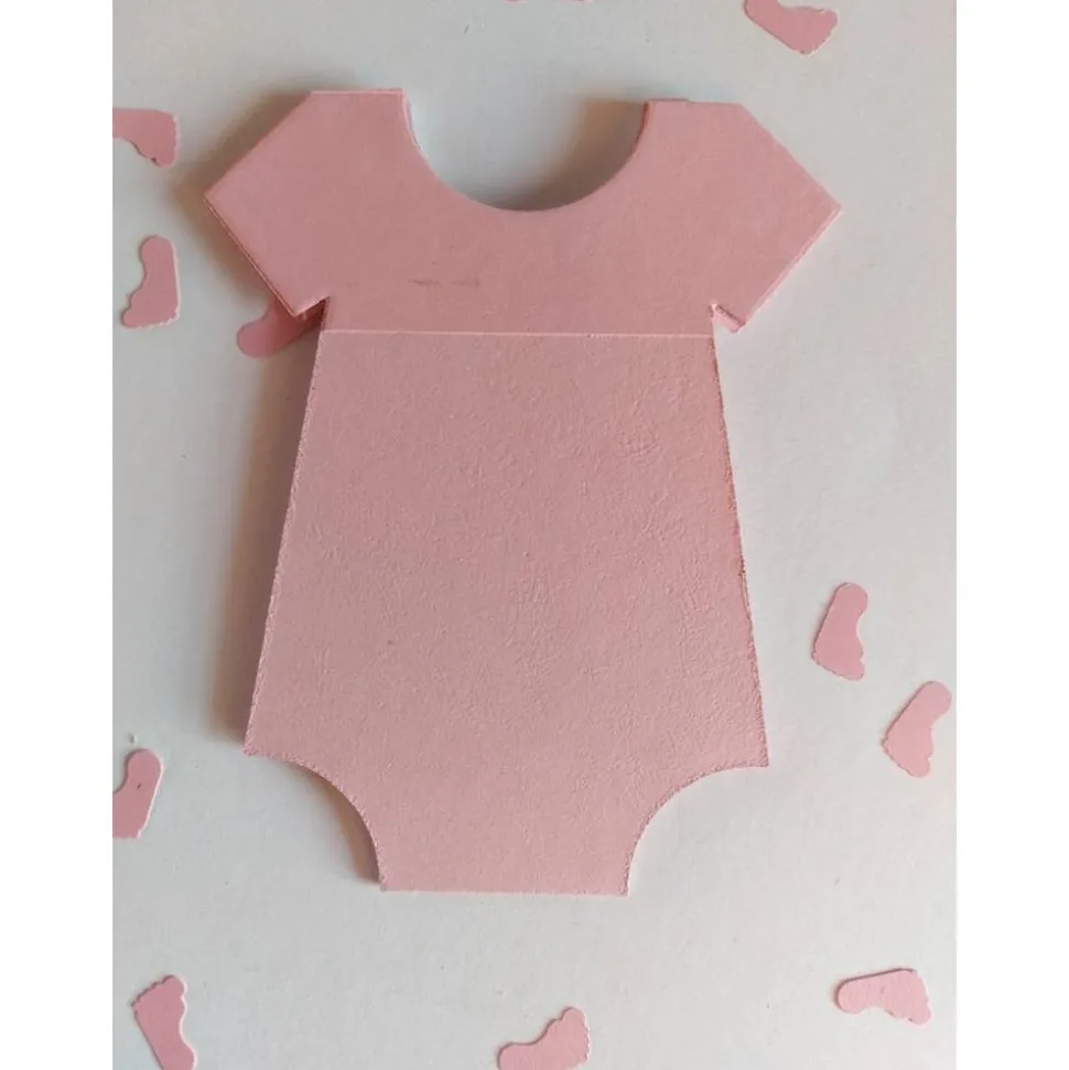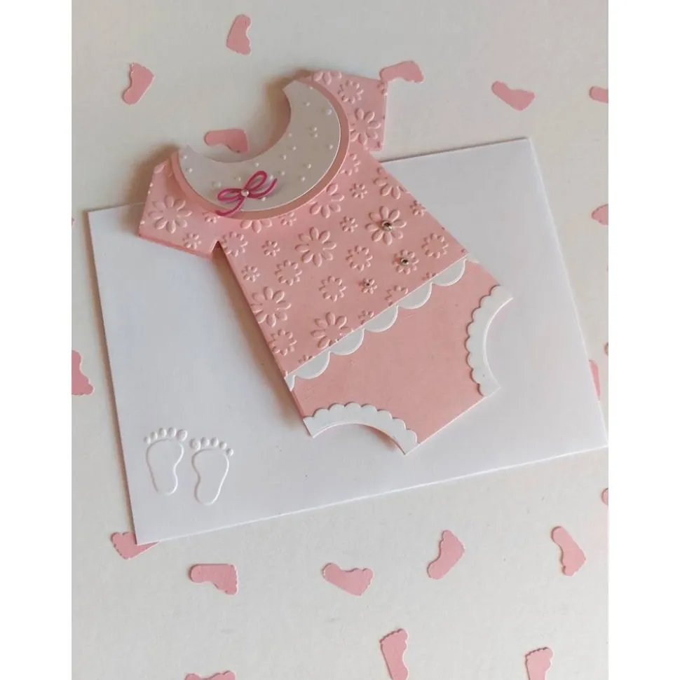 Die Karte wird mit Kuvert geliefert auf das ich Babyfüßchen geprägt habe.
