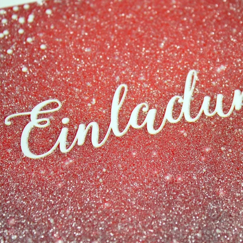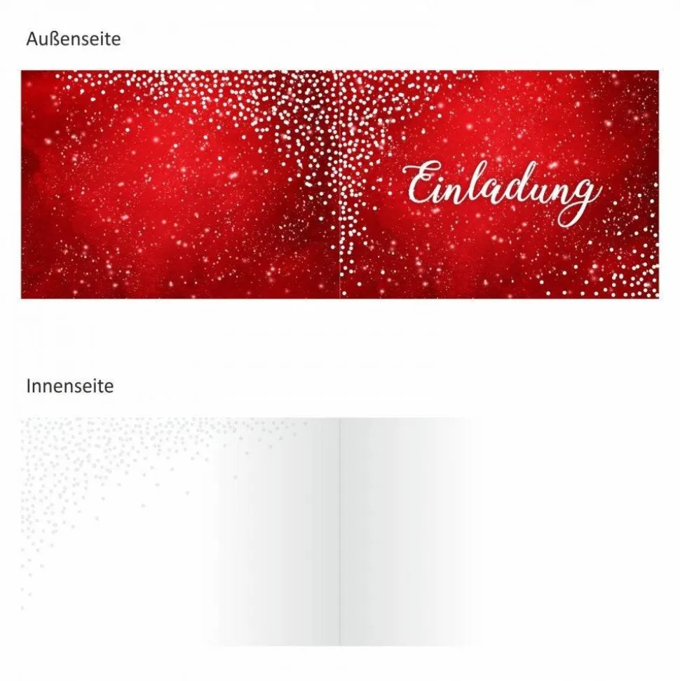 Material: 260 g/qm Chromokarton, Außenseite mit Glitzerlack veredelt, Innenseite beschreib- und bestempelbar, beidseitiger Druck im hochwertigen Offsetverfahren in Deutschland gedruckt