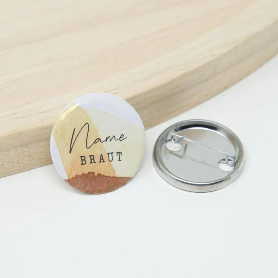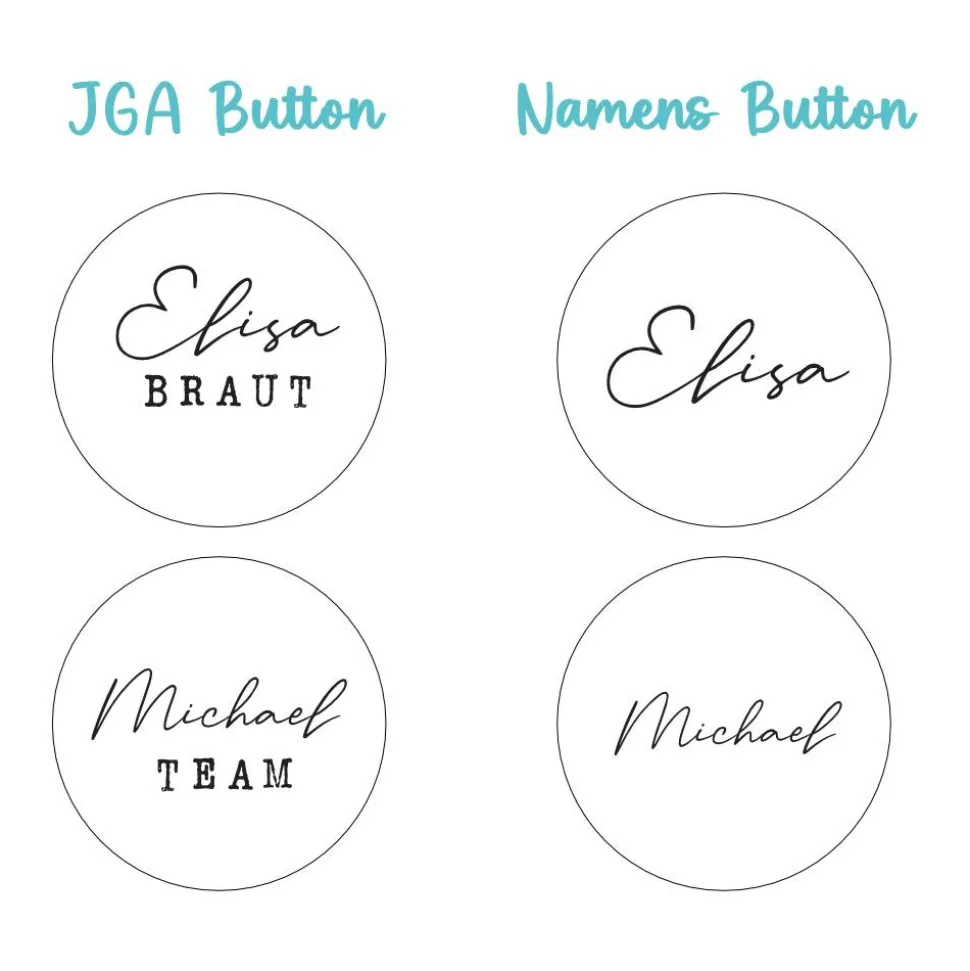 10 personalisierte Hochzeit JGA Button, Stil 03 | runde 32mm Namen Button | Junggesellenabschied Namensbutton