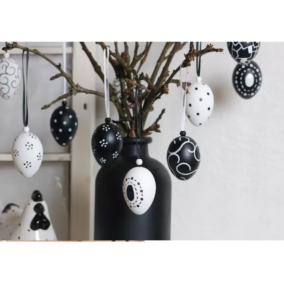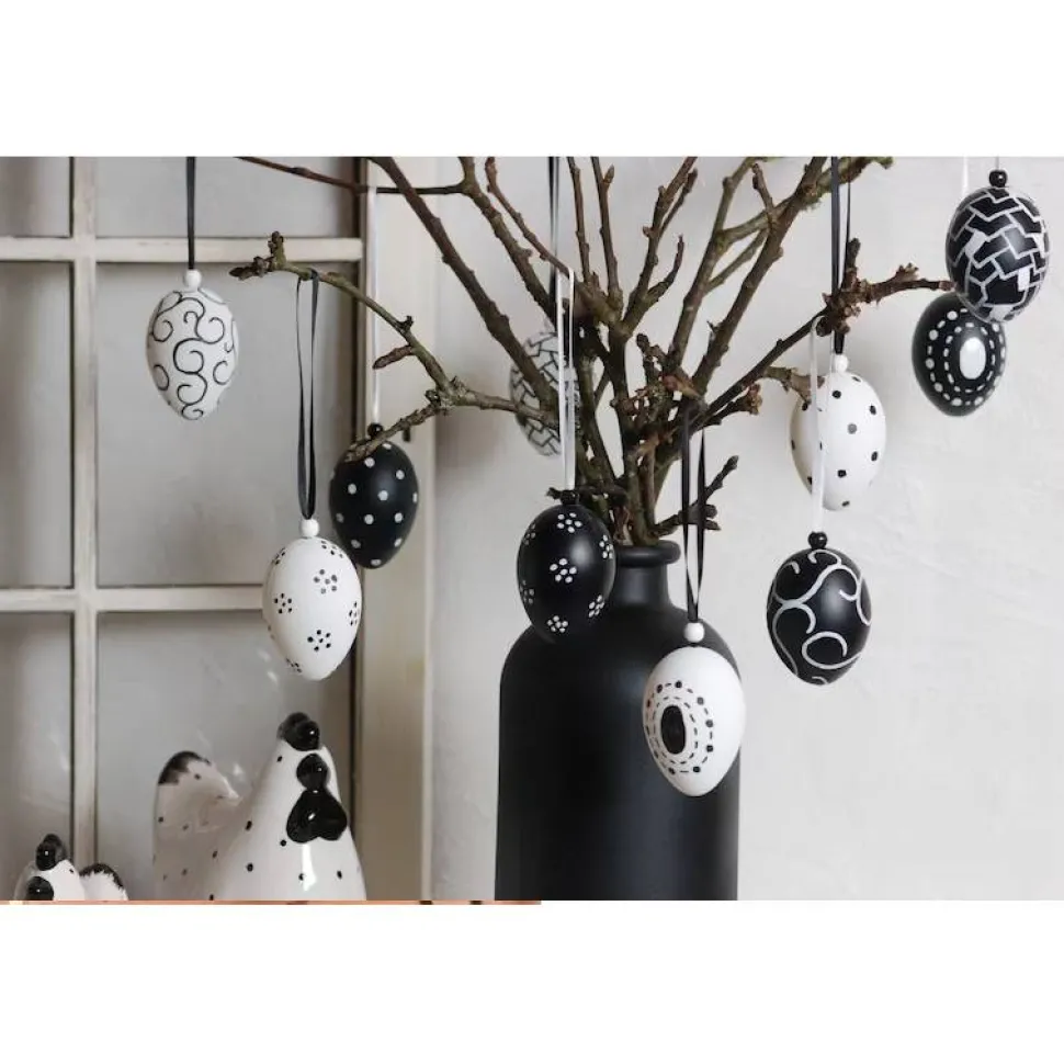 10 Stck. Ostereier schwarz weiß