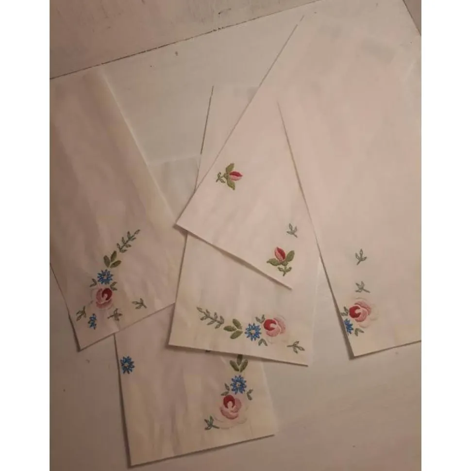 auf der Vorderseite sind sie liebevoll mit zarten Röschen in Serviettentechnik verziert …