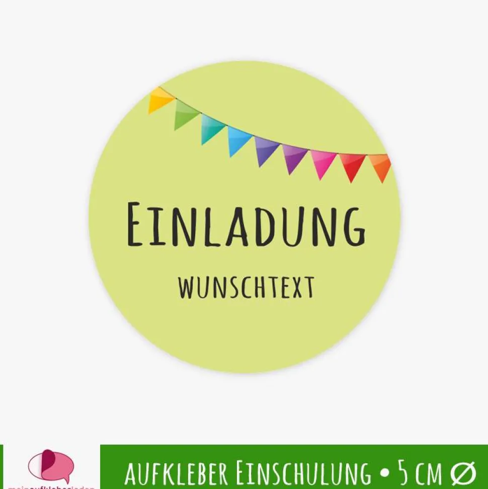15 Aufkleber | Einladung grün - Bunte Wimpel  - personalisierbar | Schulanfang, Kinderparty