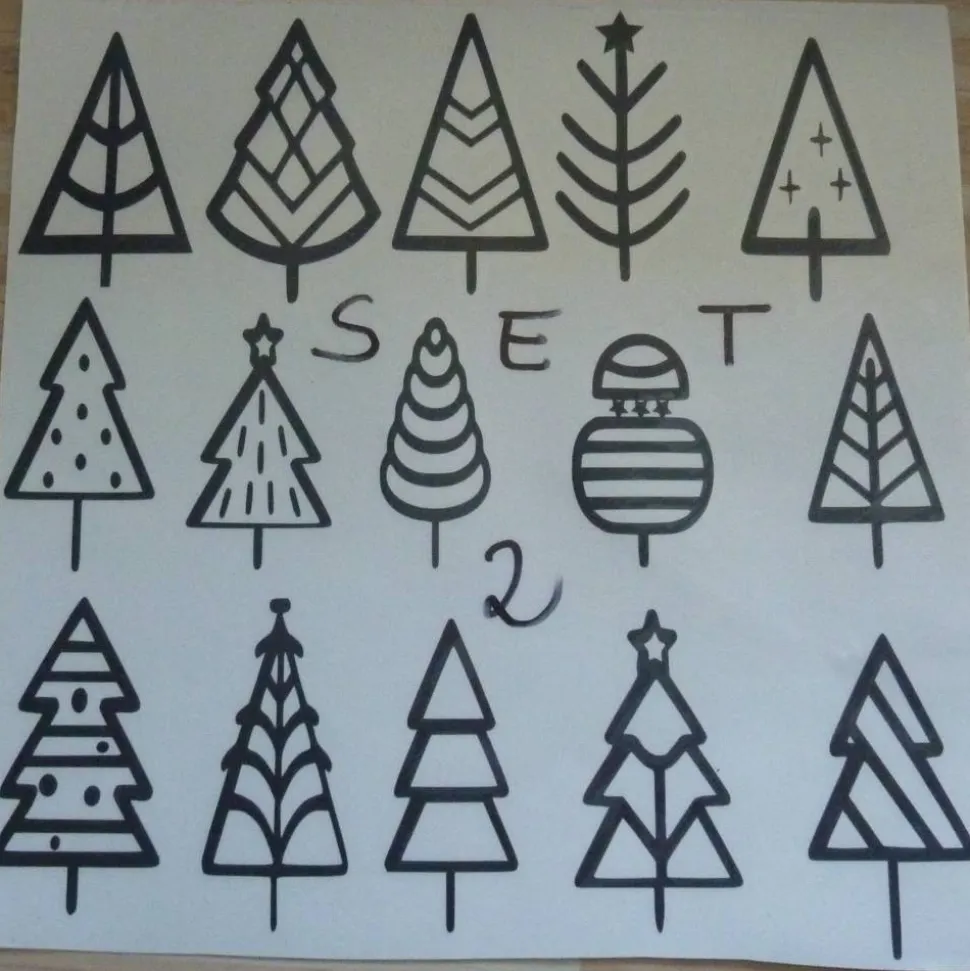 Produktname: Vinylaufkleber Set Weihnachten 15 minimalistische Tannenbäume