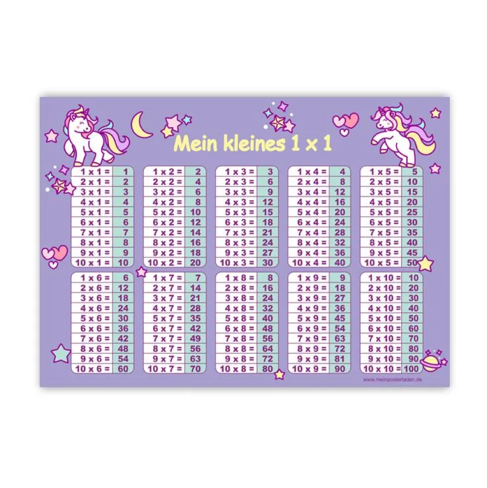 1×1 Lernposter | Regenbogen Einhorn – lila