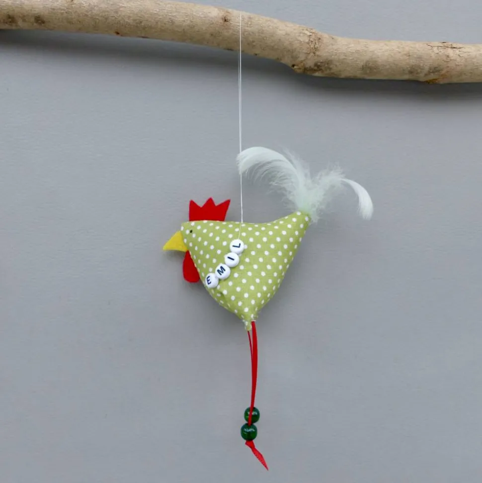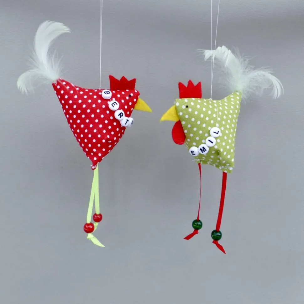 Die Stoffhühner sind gesund (können sitzen und am angebrachten Faden sogar fliegen)