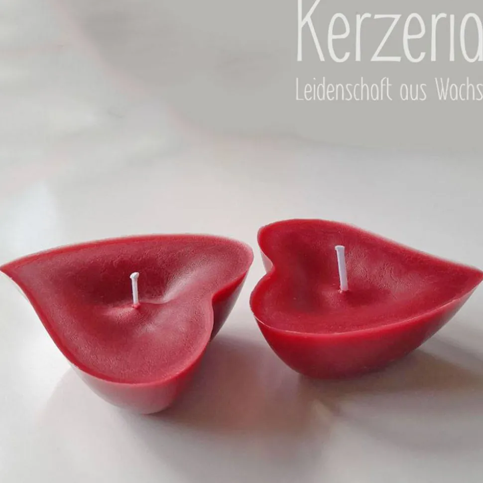 Die Herzenkerzen gieße ich in meiner kleinen Werkstatt aufwendig von Hand.