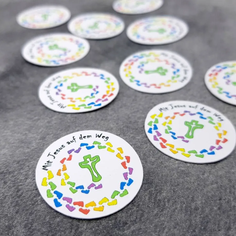 Diese 20 Streuteile aus Pappe (300 g/m²) sind die perfekte Dekoration für das Fest zum Thema „Mit Jesus auf dem Weg“. Mit einem Durchmesser von ca. 3,5 cm eignen sie sich ideal als Tischdeko oder für kreative Bastelprojekte.