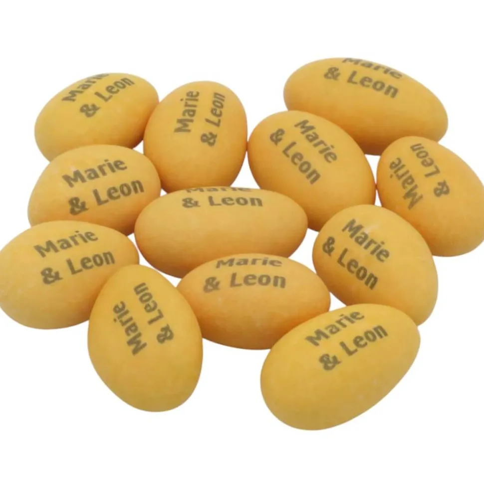 Unsere personalisierten Joghurt-Frucht-Mandeln sind eine wunderbare Geschenkidee und ein traditionelles Gastgeschenk für Anlässe wie Hochzeiten, Taufen, Kommunionen und andere besondere Feierlichkeiten. Die 5 Mandeln haben eine ganz besondere Bedeutung: