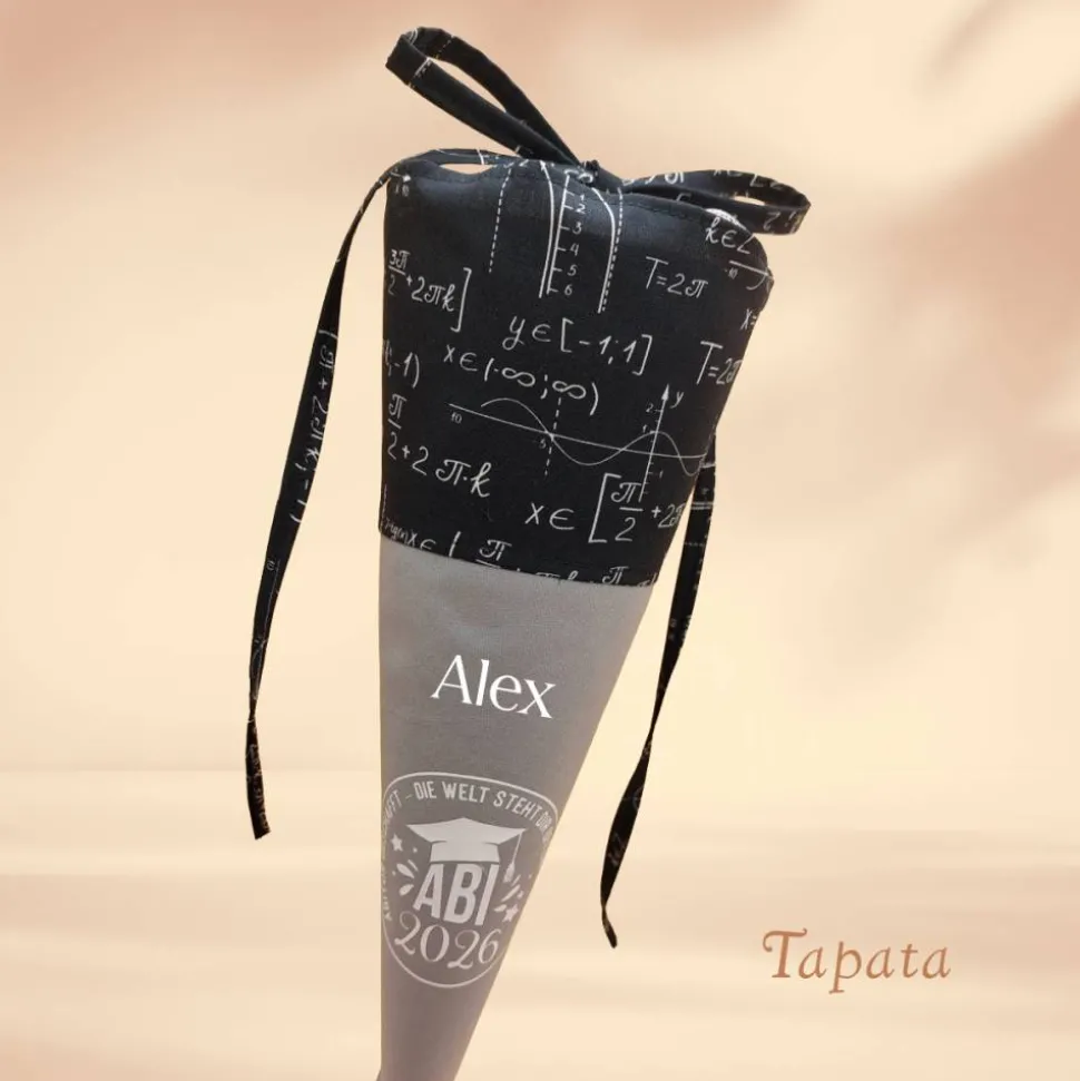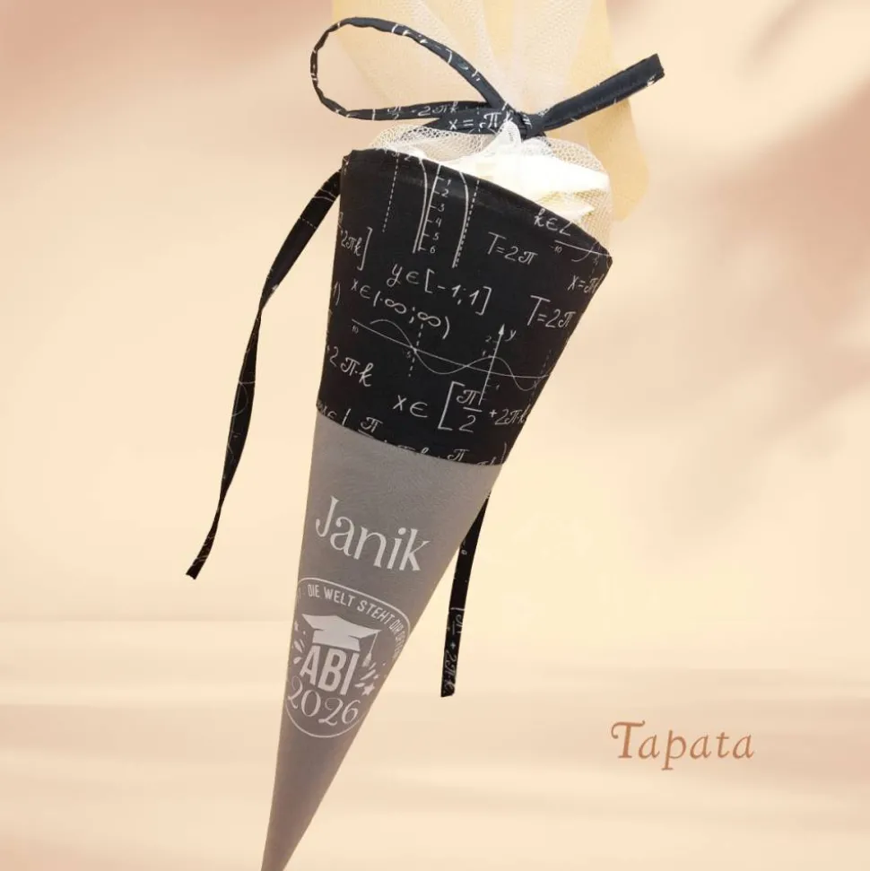 Angeboten wird eine kleine Schultüte mit einem passenden Spruch zum Abschluss(Abitur, Matura, Hochschulreife).