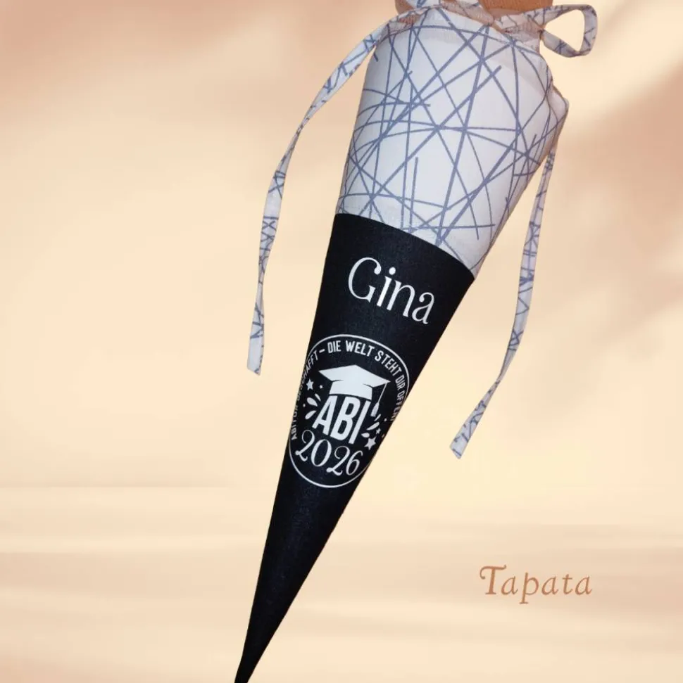 Angeboten wird eine kleine Schultüte mit einem passenden Spruch zum Abschluss(Abitur, Matura, Hochschulreife).