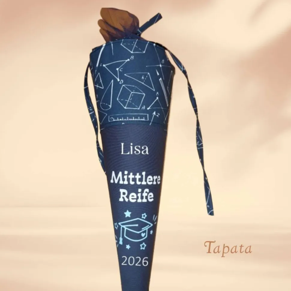 Angeboten wird eine Schultüte mit einem passenden Spruch zum Abitur oder zur Mittleren Reife. Jahreszahl wird entsprechend angepasst. Erhältlich ist die Schultüte als kleine Schultüte als Mitbringsel zum Abschlussfest