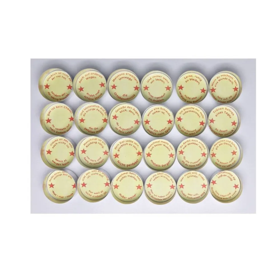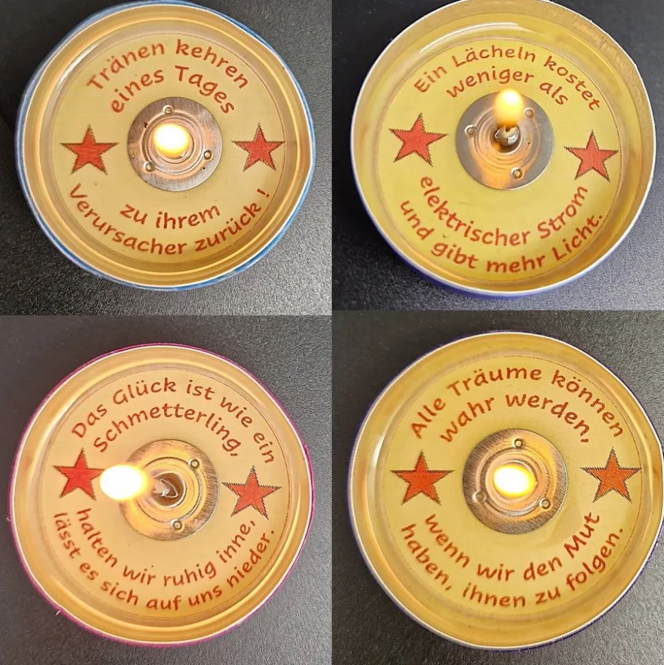 Überrasche deine Liebsten mit 24 einzigartigen Teelichtern mit geheimen Botschaften! Diese originellen Teelichter eignen sich ideal als Adventskalender-Füllung oder als kreative Geschenkidee zur Weihnachtszeit. Jedes Teelicht verbirgt eine individuelle Nachricht, die erst sichtbar wird, wenn das Teelicht etwa 45 Minuten brennt. Die handelsüblichen Teelichter befinden sich in einer silberfarbenen Aluminiumhalterung und sind nummeriert. Eine kleine Anleitung – „Zünde die Kerze an, eine Botschaft erwartet dich dann“ – macht das tägliche Öffnen im Advent zu einem besonderen Erlebnis.