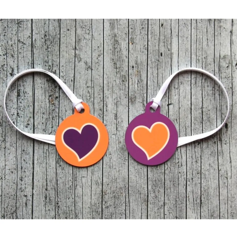 Die Rückseite der Anhänger kann mit dem Aufkleber schnell selbst beschriftet werden, z.B. mit Namen und/oder Adresse.