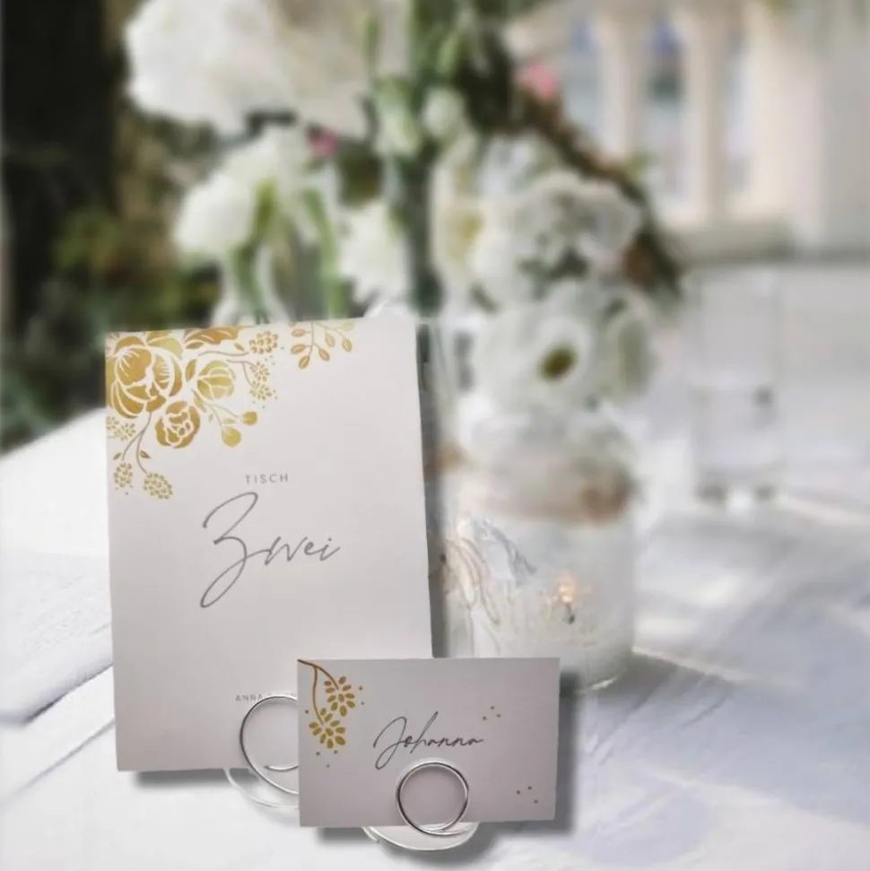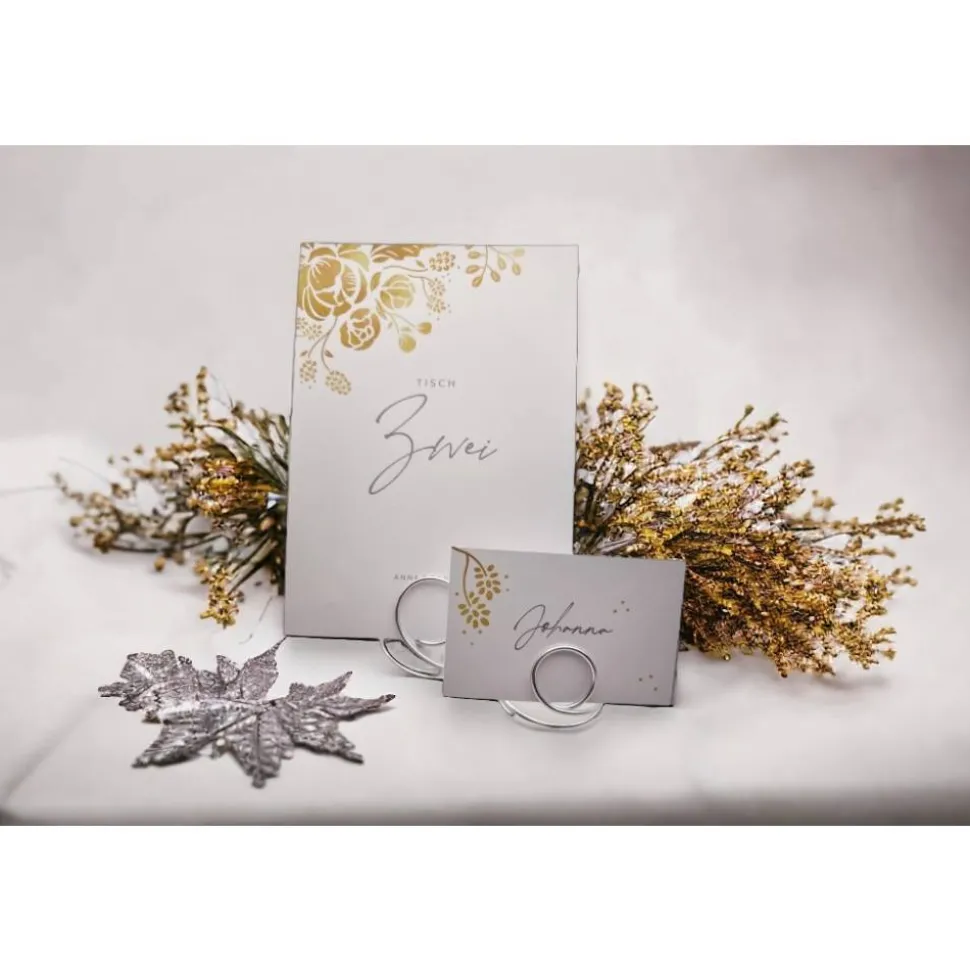 Kleine Halter für Platzkarten oder große für Tischnummer oder Menükarte. Die Halter eignen sich auch als Fotohalter.