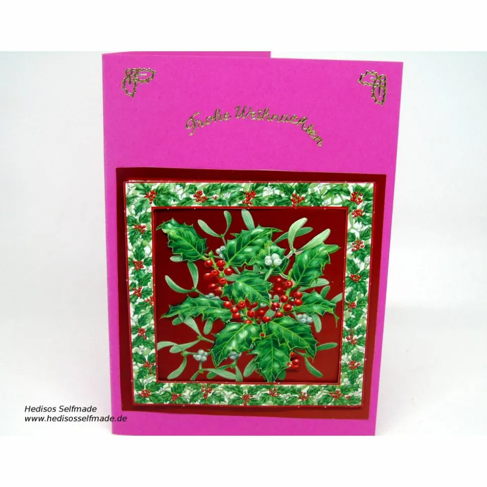 Stechpalmen- und Mistelzweige als kleiner Weihnacchtsgruß, liebevoll und aufwendig in Handarbeit gearbeitet. Das spricht für eine einzigartige Karte für einzigartige Menschen.
