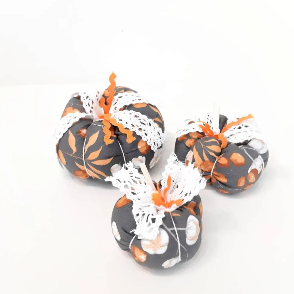 Süße Herbst-Deko, 3 Stoffkürbisse aus Baumwolle in versch. Größen. Eine tolle Deko, die überall ein Plätzchen findet, ob auf der Fensterbank oder als Tischdeko zum Erntedankfest ziehen die kleinen Früchten die Blicke auf sich.