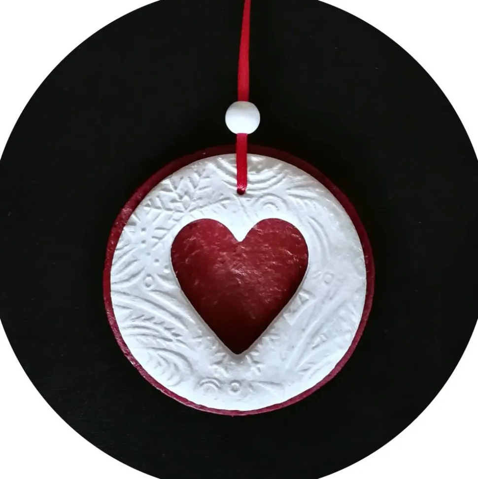 – gefertigt aus Salzteig, Pappmaché, Satinband, Holzperlen u. Acryllack