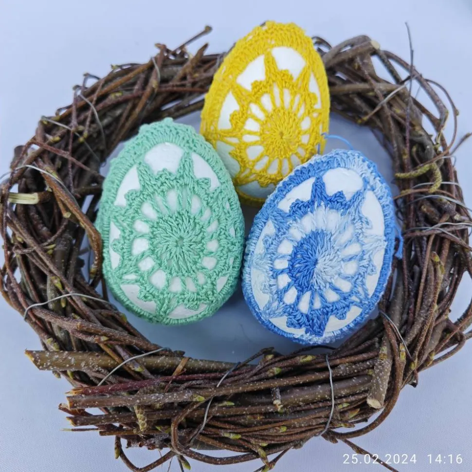 das Angebot gilt, wie abgeildet, für diese 3 Eier (ohne Weidenkranz)