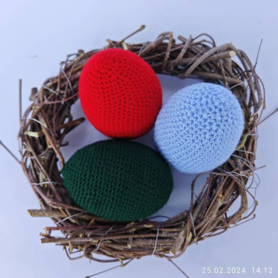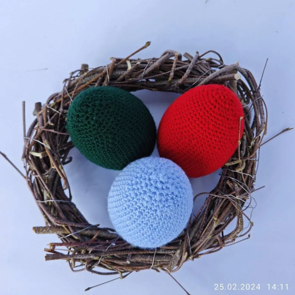 das Angebot gilt, wie abgeildet, für diese 3 Eier (ohne Weidenkranz)