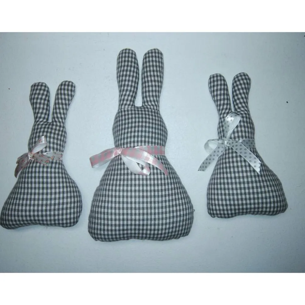 3 Deco Osterhasen aus kariertem Baumwollstoff.