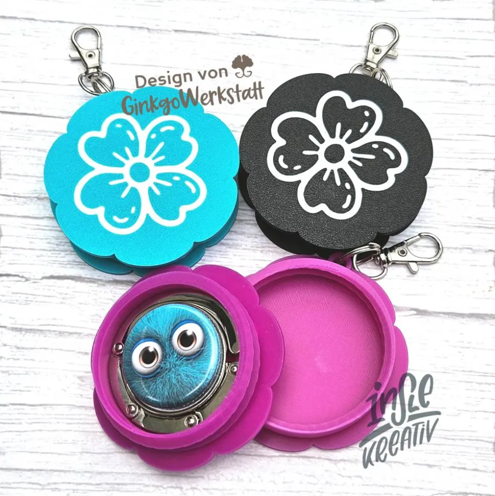 Entdecke jetzt deine einzigartige 3D Druck Blumen-Buttonbox für Badgematic Taschenhalter! Diese individuell gestaltbare Box im Blumen-Design ist die perfekte und nachhaltige Verpackung für deinen Taschenhalter. Dank des integrierten Karabiners kannst du die Box sicher und bequem an jeder Tasche befestigen, sodass dein Taschenhalter immer griffbereit ist.