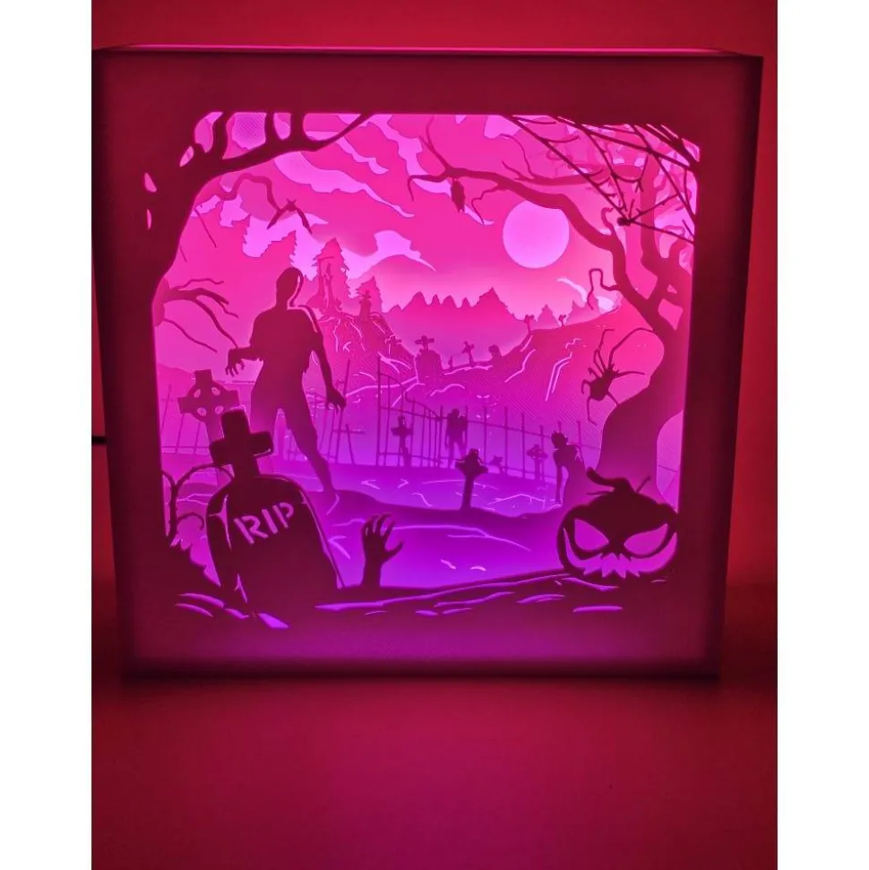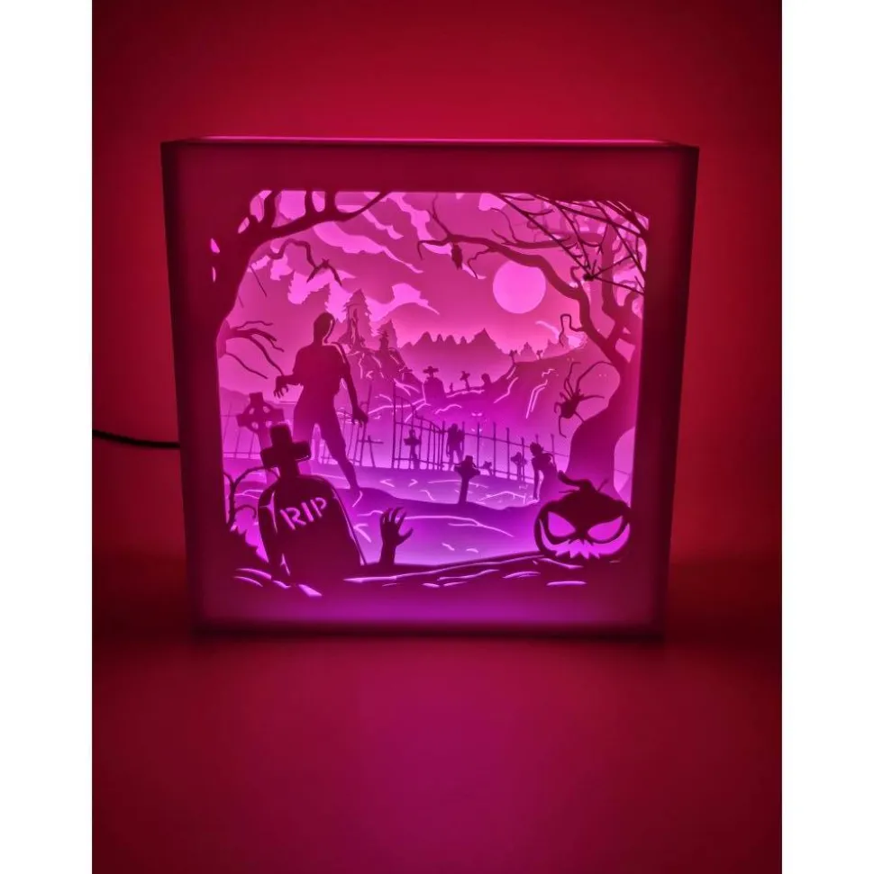 Diese 3D-gedruckte LED Lichtbox ist der ideale Begleiter für Halloween und schafft eine unheimliche Atmosphäre, die garantiert alle Blicke auf sich zieht. Ein Muss für Fans von gruseligen Dekorationen!