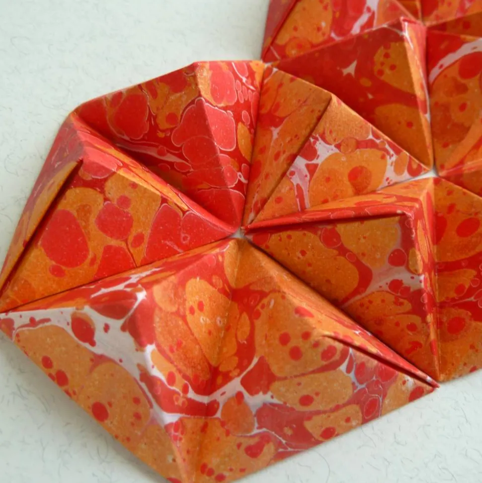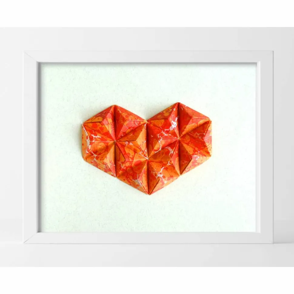Ein absoluter Hingucker: Rot marmoriertes Origami-Herz mit Goldsprenkeln. Ein liebevolles Geschenk zum Muttertag, Valentinstag, Hochzitstag oder einfach so