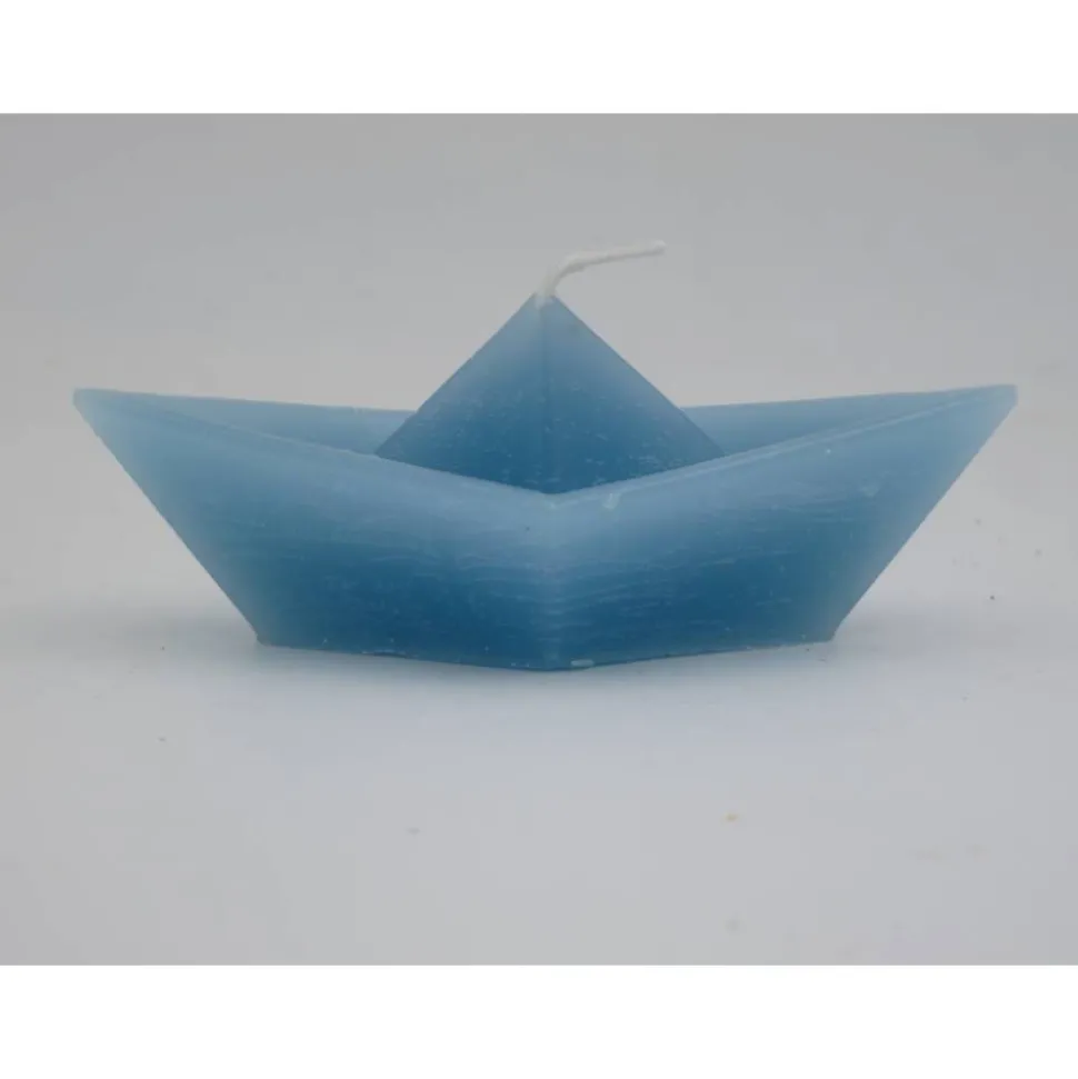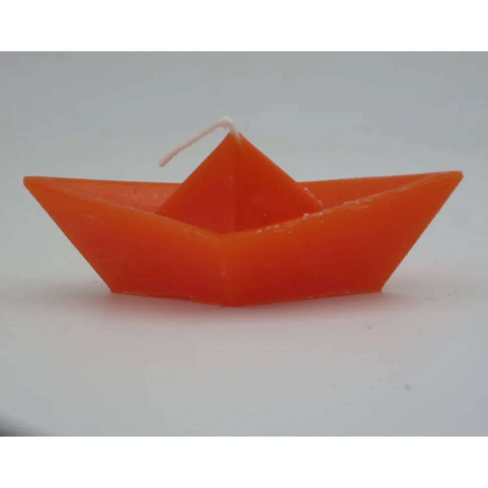Bunte Papierbootkerze in verschiedenen Farben. Sie schwimmen wunderbar in einer Schale auf dem Sommertisch.