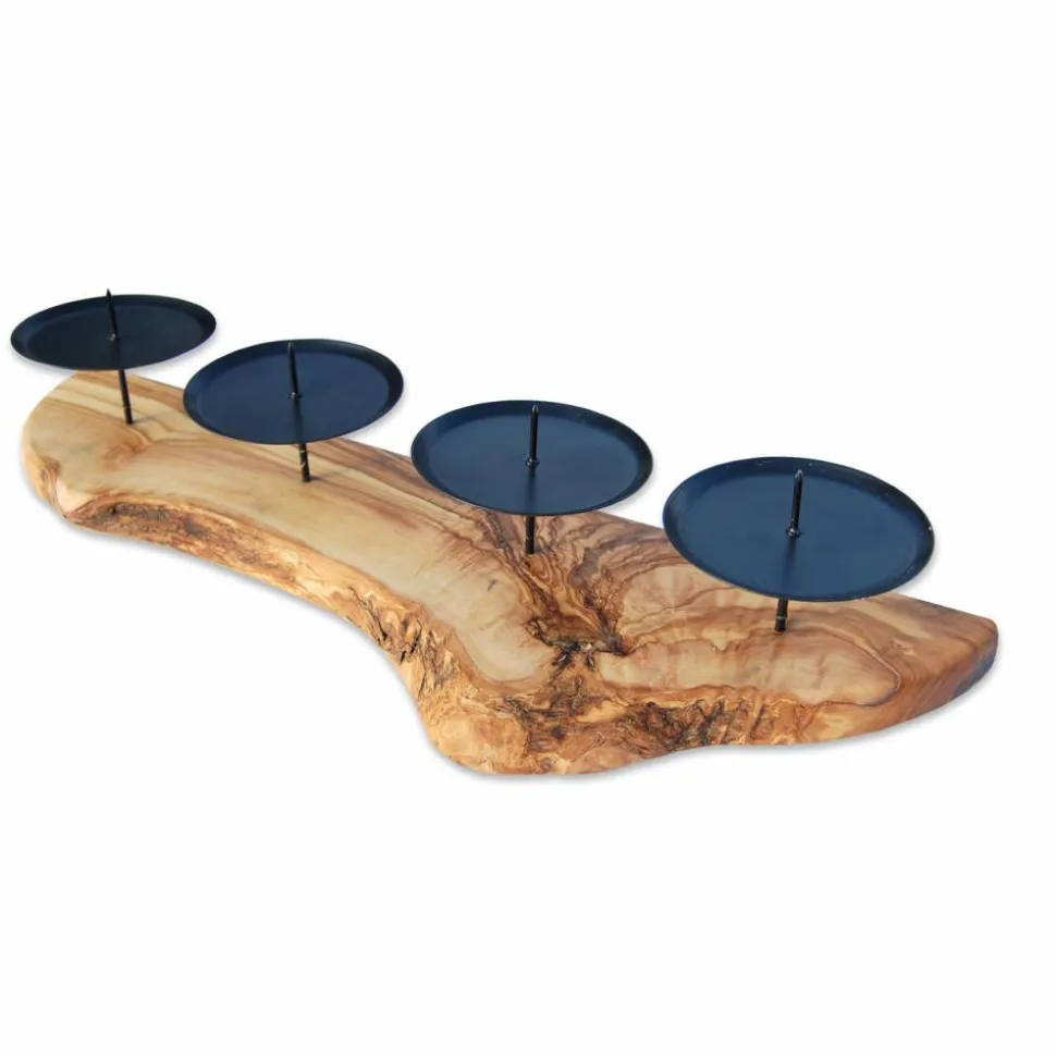 1 x 4er Kerzenhalter ADVENT-rustikal aus Olivenholz (ohne Kerzen)