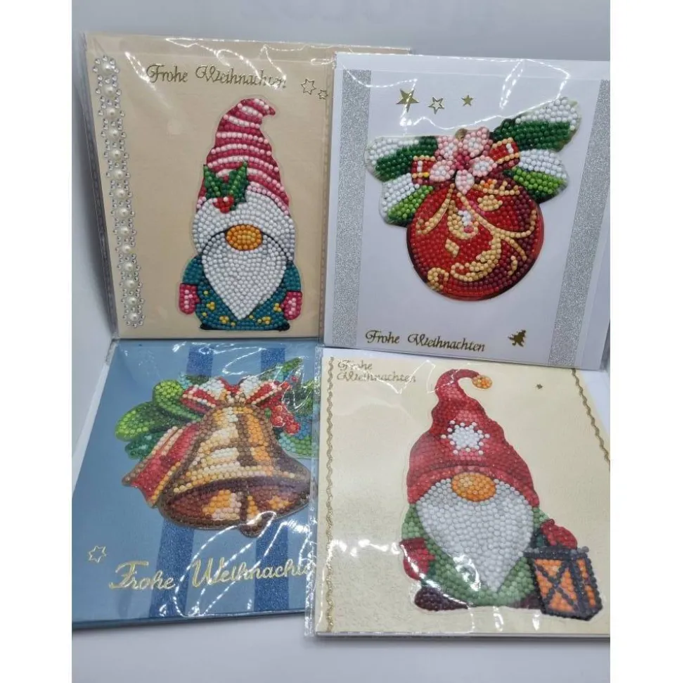 Entdecke ein exklusives 4er Set handgearbeiteter Weihnachtsgrußkarten mit funkelnden Diamond Painting Motiven!