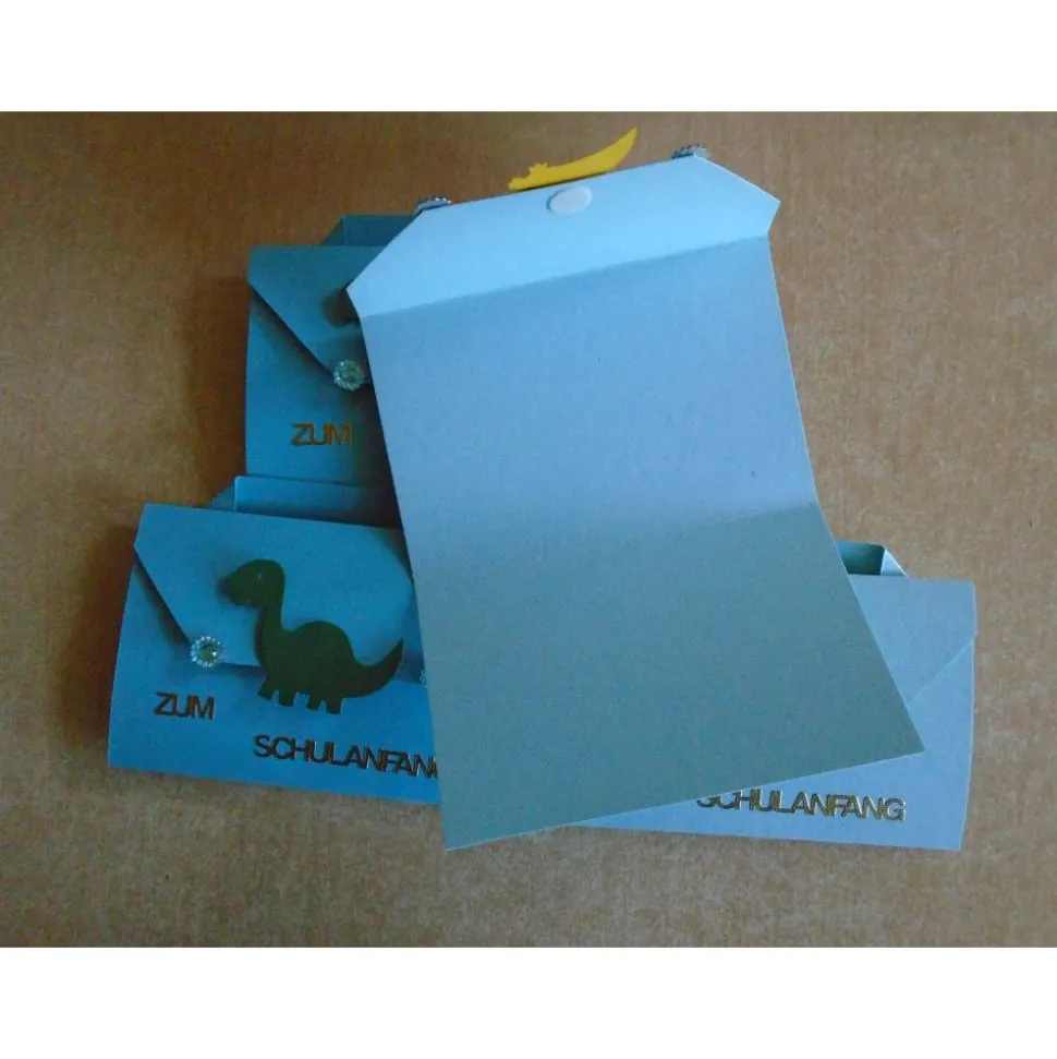 diese Karte Einschulung/Schulanfang habe ich als Einladungskarten und in der Form eines Schulranzen mit Dino/Dinosaurier motiven gefertigt..
